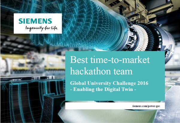 3月12日至17日,西门子全球大学挑战赛“Enabling the Digital Twin”的决赛在柏林西门子燃气轮机总部举行。由公司博士生杜辉、余成义、杨肖组成的参赛队伍,在陈晓波老师的指导下,以“燃气轮机关键部件高反光金属表面三维测量技术与原型开发”的课题在全球5支决赛队伍中脱颖而出,获得了该项赛事的“最具商业价值奖”。