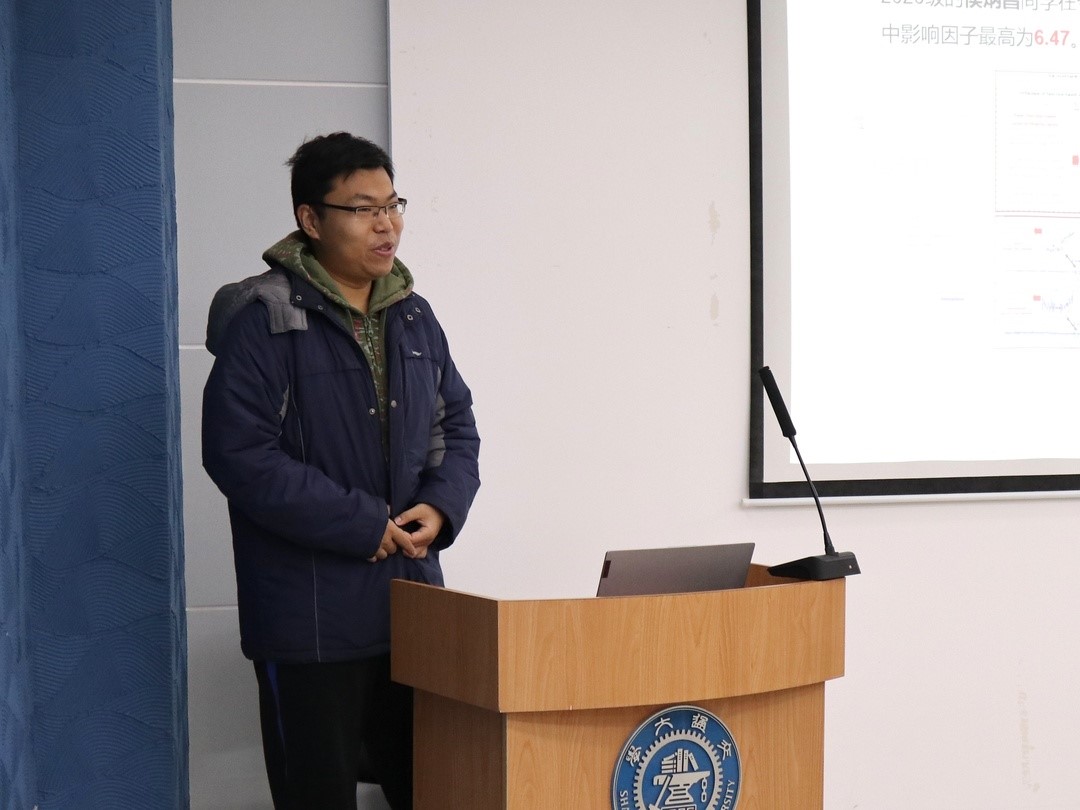 随后,菁英会2019-2020年度负责人宋嘉诚同学做了年度工作总结。在上个学年,菁英会组织多次素拓团建,午餐会,羽毛球赛,学术沙龙等活动;菁英会会员在各类期刊、杂志及学术会议上发表文章30篇,申请专利3项,并参与国际学术会议7人次。