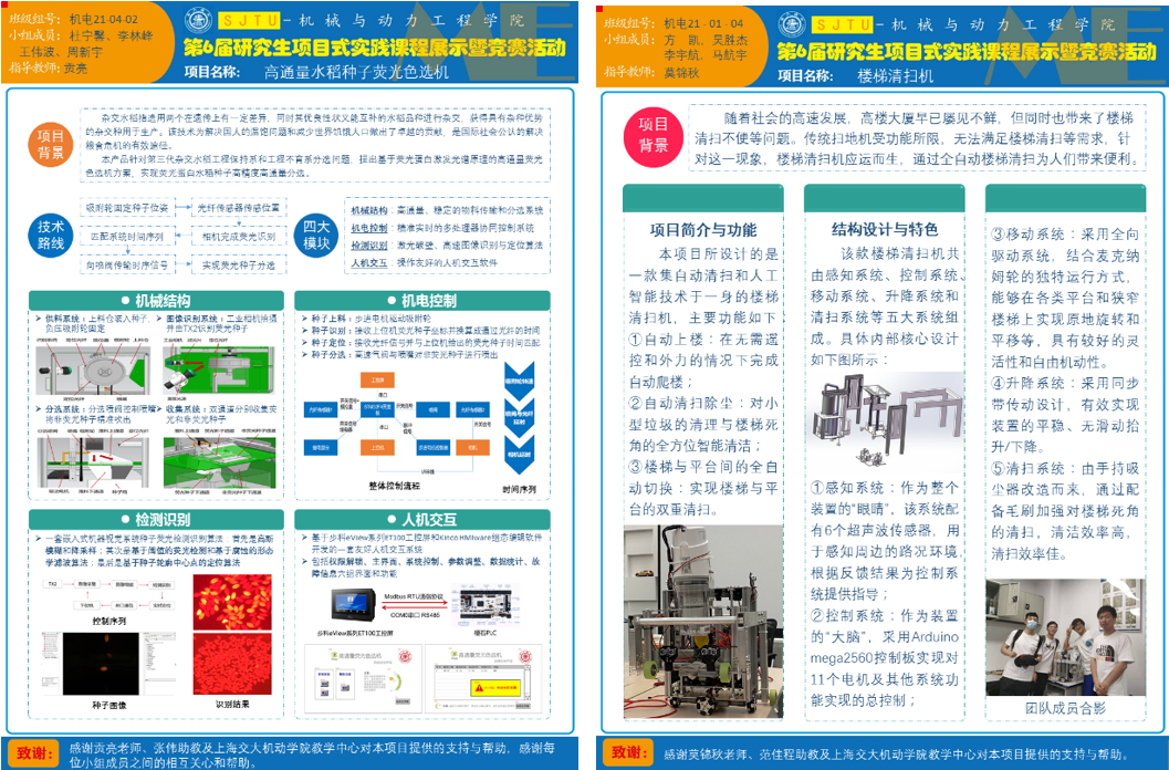专业学位研究生项目式实践课程《复杂机电/动力系统的设计与实践》,自2013年设立至今,已形成了完善的教学大纲、实践平台和教学团队队伍,提高了员工的实践和创新创业能力,课程项目成果得到了社会和企业的认可。未来,项目式实践课程将深入挖掘和对接企业和市场需求,拓宽交叉学科项目设计,以创新竞赛等为任务式牵引,搭建员工创新产品孵化器,培育富有创新力及应用价值的高水平作品,进一步提升专业学位研究生的综合工程实践能力。