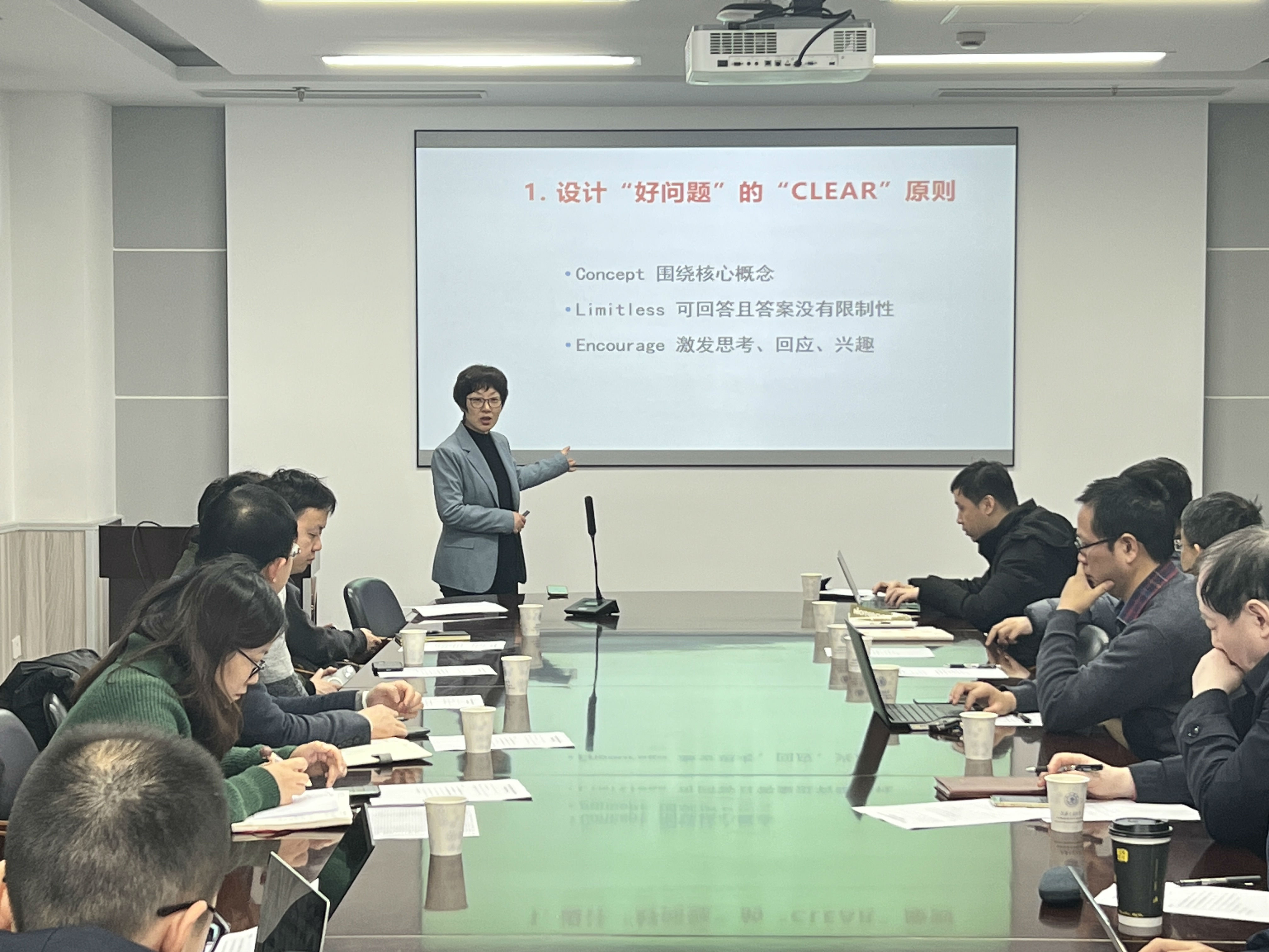 王力娟做《如何问出好问题》主题培训,从设计“好问题”的“CLEAR”原则、认知层次理论、循环提问模型等方面进行展开,为工作坊与会教师带来了精彩的培训报告。