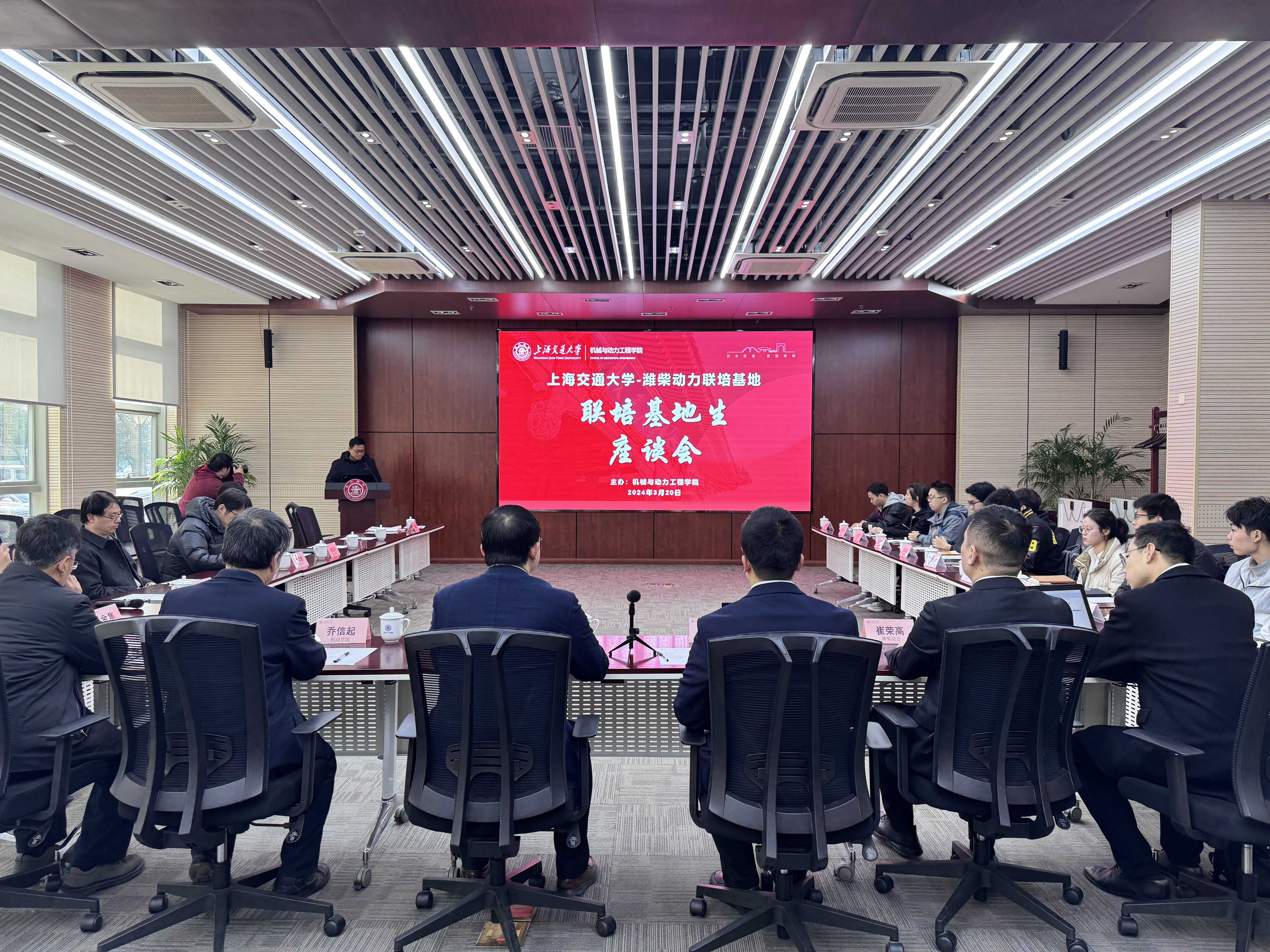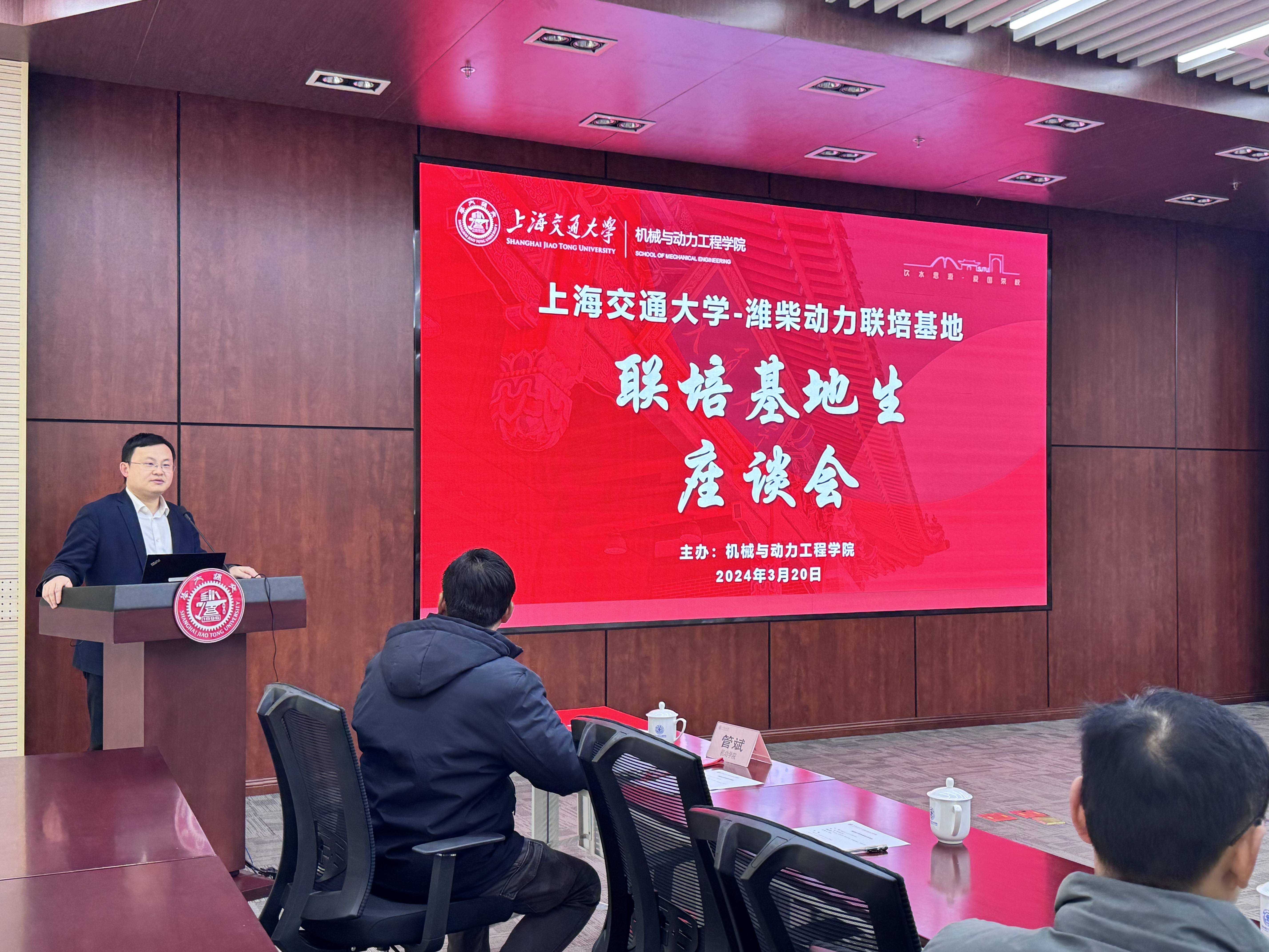3月20日上午,伟德国际1946第二届“潍柴日”系列之联培基地生座谈会在振华会议室举办。潍柴控股集团有限公司发动机研究院经理助理谭治学、新能源研究院驱动系统设计业务经理崔荣高、组织人力与绩效考核部招聘业务经理陈朱友和、伟德国际1946副经理李玉阳、基地项目主任管斌、校内导师和基地在读研究生等20余人参加活动。