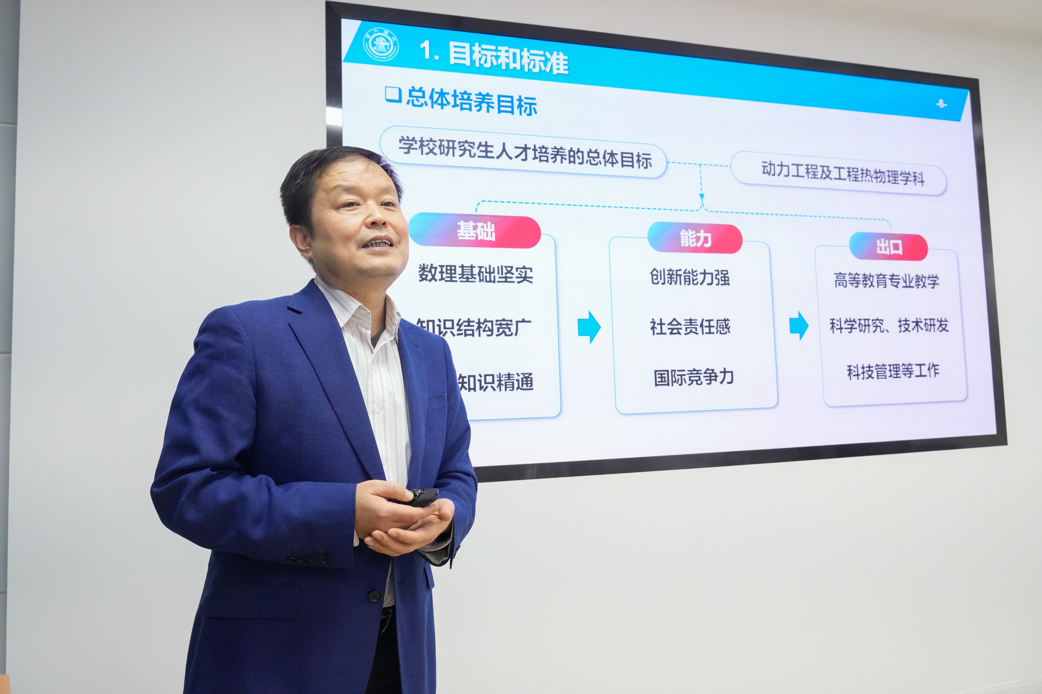 分组现场评估环节,瞿叶高、代彦军、顾汉洋分别代表机械工程、动力工程及工程热物理、核科学与技术三个学位点进行了汇报,全面介绍了各学位点的培养目标、培养方向、团队队伍建设、科学研究、教学科研支撑、人才培养规范及创新、服务社会贡献等方面的建设情况及成效。专家认真听取了学位点汇报,审核了培养方案、代表性学位论文、制度手册等材料,进行了现场质询,与教师和员工代表进行了座谈交流,全面考察了各学位点的建设情况和目标达成度,经过充分研讨形成了评估意见。