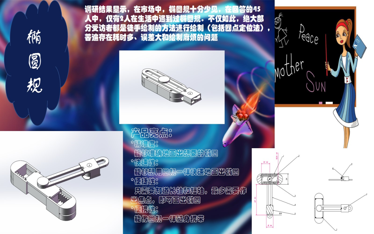 1. 开发一款能够用于制图的椭圆规,工作过程中,绘制要比较精确、绘制范围要比较广、绘制方式要简单。