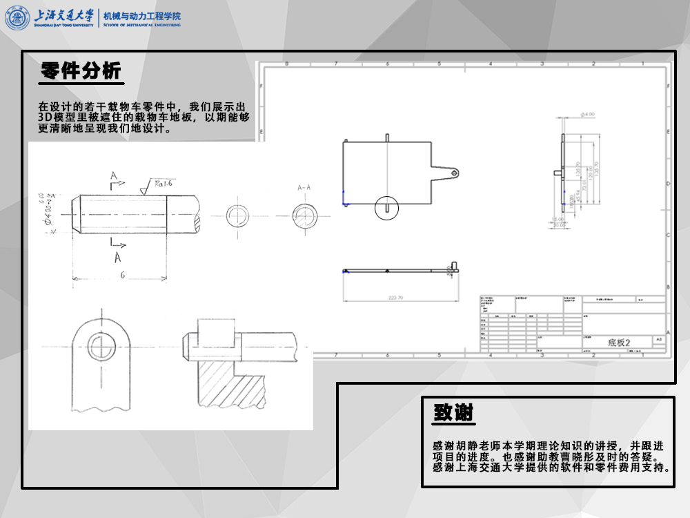 我们的主要目标是利用Arduino的主板加上超声波测距模块和红外传感器模块来实现我们所需要的自动跟随功能,并且用独立的四个马达控制车轮转动,这样的设计可以让我们的自动跟随小车感应到被跟随物品在他前方的位置,与此同时,也通过逻辑判定实现了遇到障碍自动停止的功能。除此之外,我们还要让我们的自动跟随小车具有载物的功能,在载物部分使用了连杆和滑槽的结构设计,让我们在卸货环节可以使载货平台实现一个倾倒的功能。