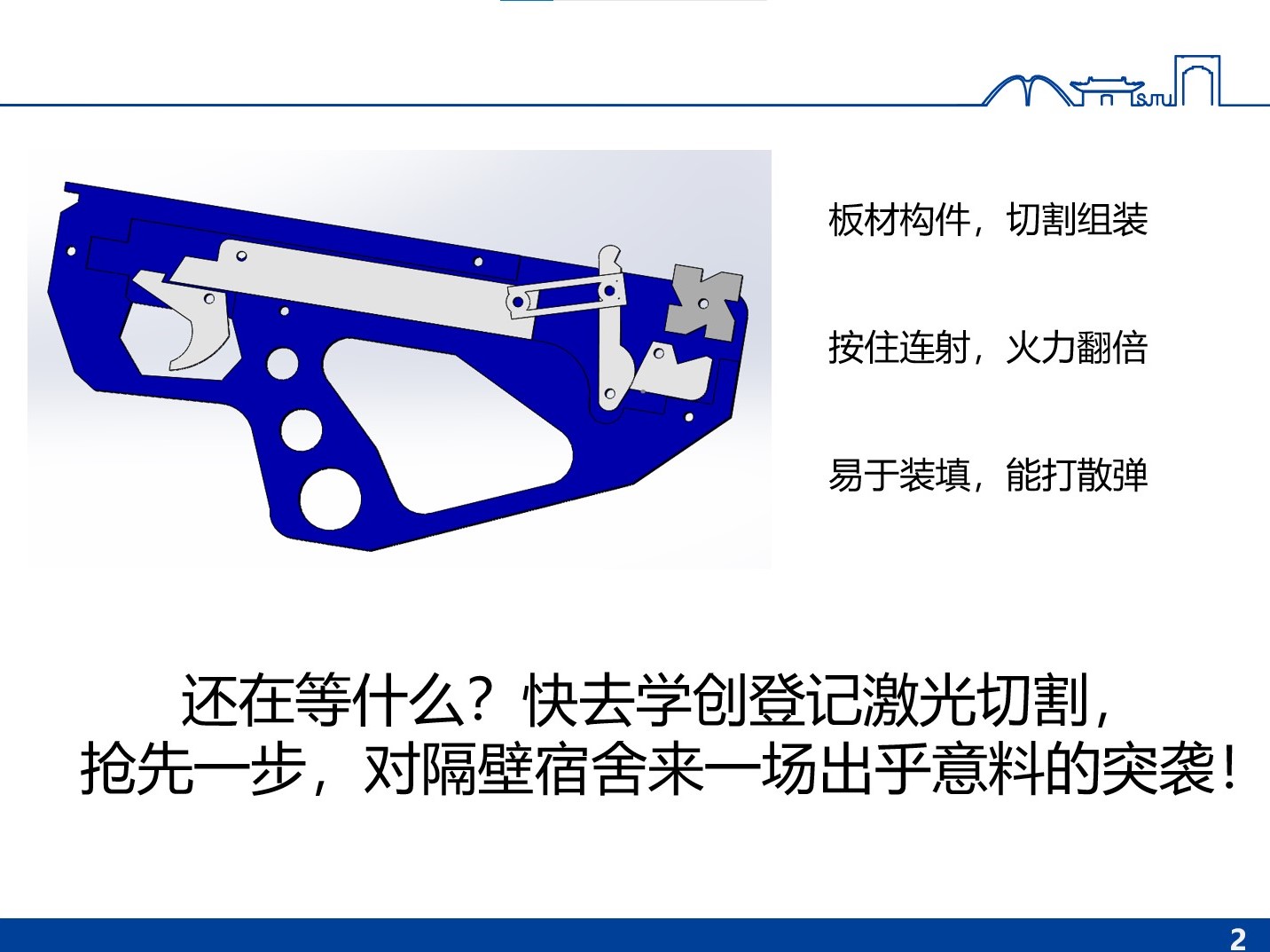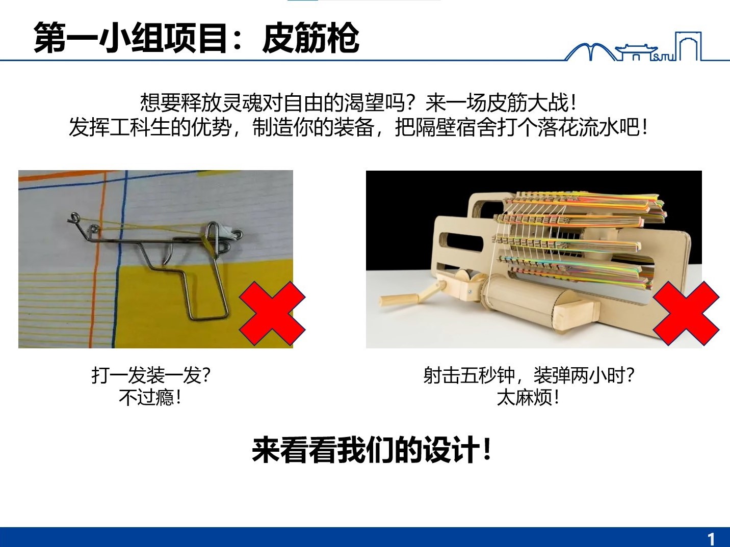 由于疫情原因,同学们已经抑制灵魂对自由的渴望近百天了,当管控措施终于结束,大家需要释放一下压抑已久的天性,像孩子一样去玩耍。本小组设计的新款皮筋枪能在使用上较传统已有的皮筋枪更加方便,且制作难度对于交老员工来说相当低,非常适合宿舍之间来一场精彩刺激的战斗。