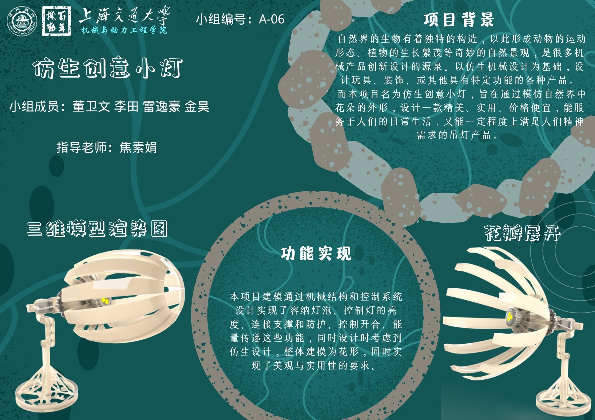 而本项目名为仿生创意小灯,旨在通过模仿自然界中花朵的外形,设计一款精美、实用、价格便宜,能服务于人们的日常生活,又能一定程度上满足人们精神需求的吊灯产品。