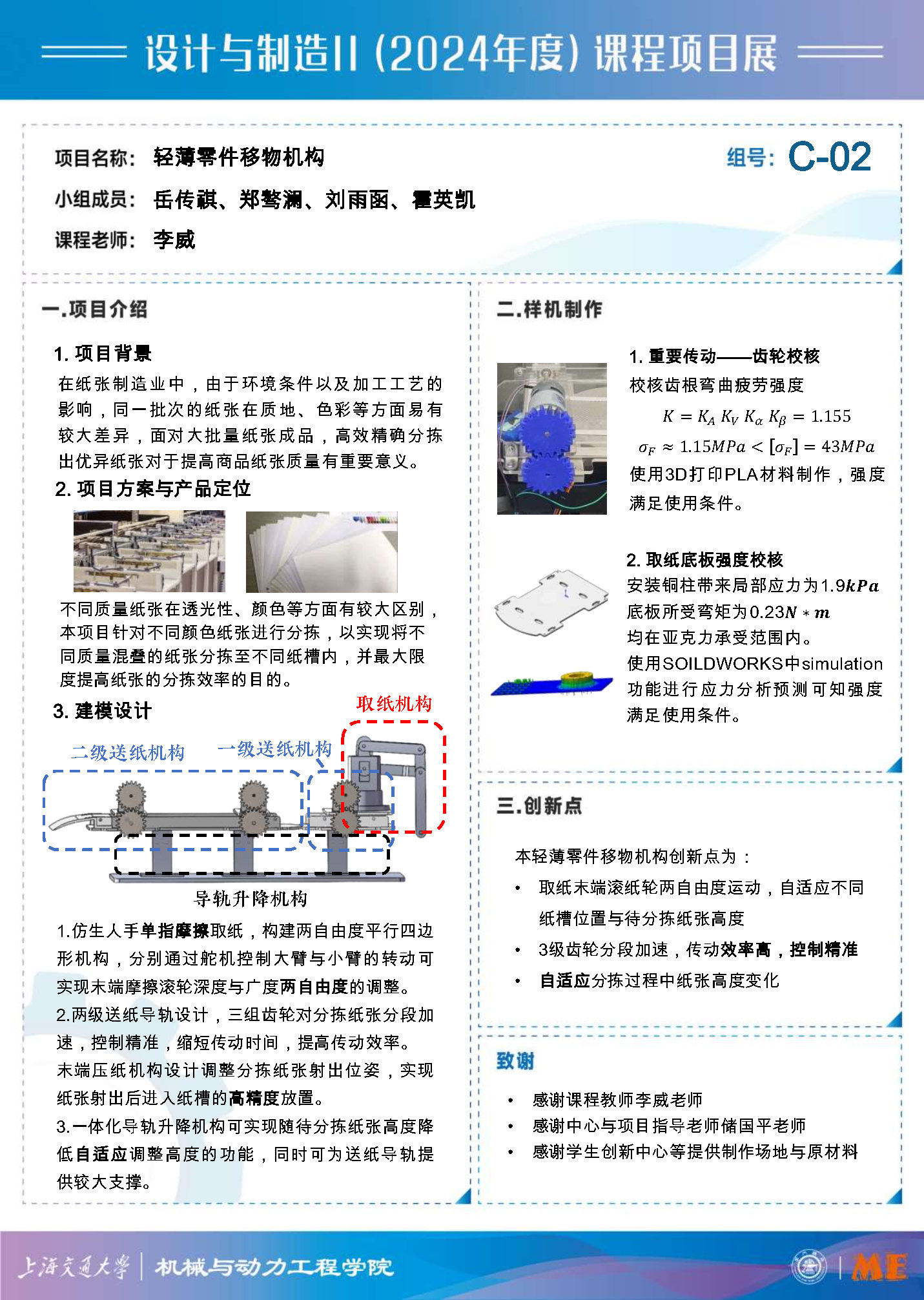 • 取纸末端滚纸轮两自由度运动,自适应不同纸槽位置与待分拣纸张高度