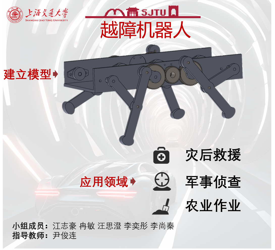 本项目旨在设计和制造一种越障机器人,能够在复杂地形中稳定运行,有效跨越坡道、门洞和凹坑等障碍物。项目团队运用机械设计、电子控制、仿真分析与实体模型制作等过程,完成了越障机器人的设计与原型制作。