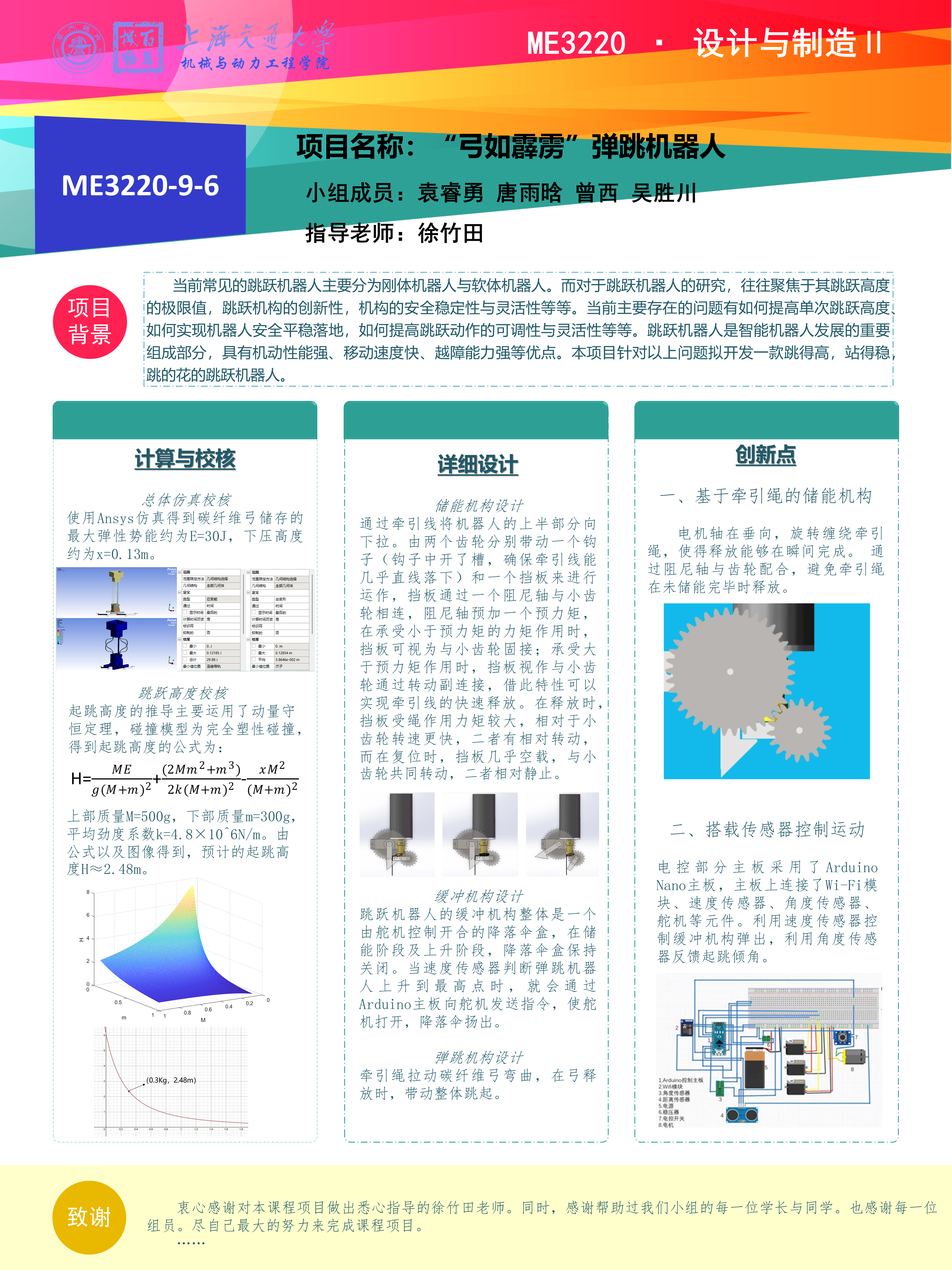本学期伟德国际1946开展项目展挑战赛——跳跃机器人,应挑战赛的要求,我们小组设计了“弓如霹雳”弹跳机器人。