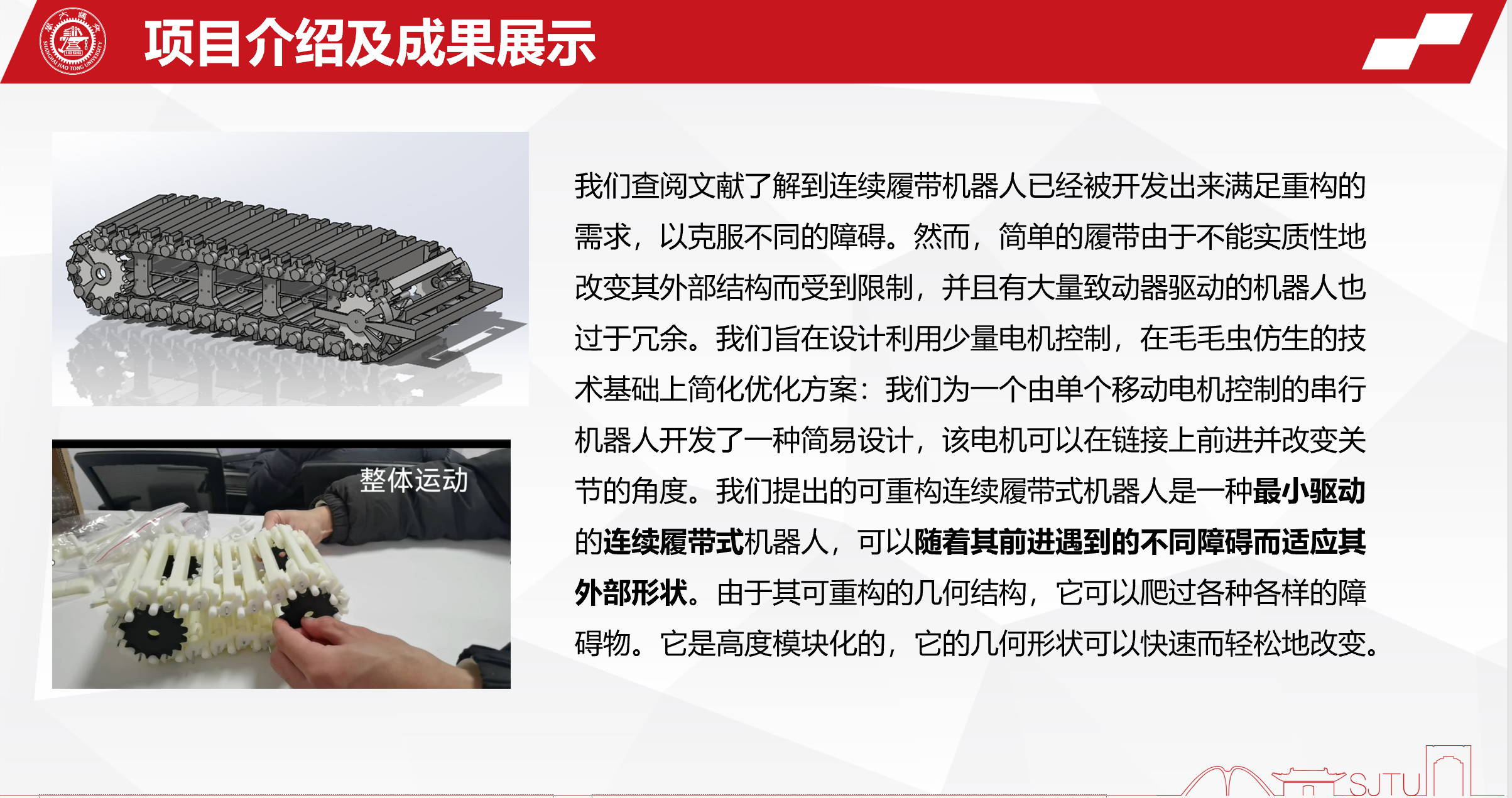 该项目的整体目标是设计出模仿毛毛虫在运动过程中可改变形状适应环境的机器人。其细节要求如下: