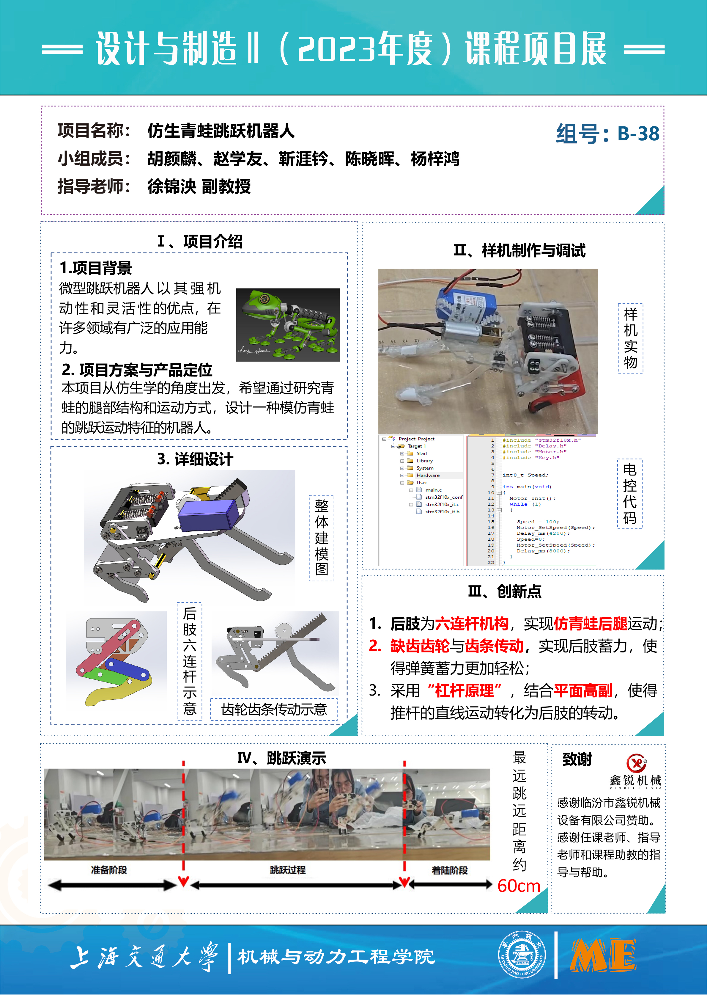 实现青蛙自动化跳跃,最远跳远距离约60 cm,能实现平稳落地、连续跳跃、越障等功能
