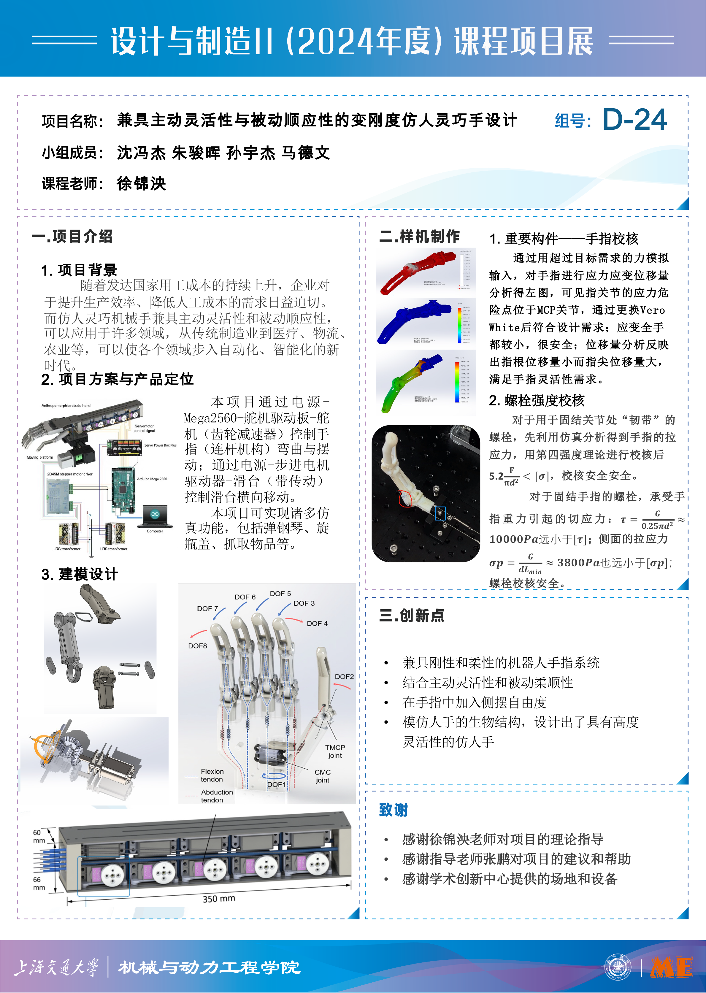成功实现了灵巧手的被动柔顺性,通过优化设计,使系统在保持简单机电结构的同时,具备了更轻的重量、更小的体积和更低的成本,且控制架构更为简化。