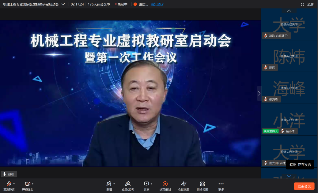 赵继表示机械工程专业虚拟教研室建设应强化落实立德树人任务、协同搭建专业交流平台、引领机械学科改革方向,依托虚拟教研室平台,促进全国高校机械类专业不断自我更新教学内容、促进教师队伍建设、加强教与学深度融合,期待机械工程专业教研室能在全国起到标杆引领作用。