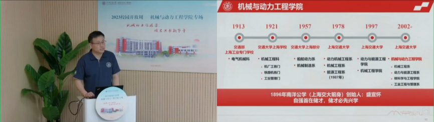 公司党委副书记胡永祥从社会发展与需求引入,详细介绍了公司本科专业方向、深度与广度相结合的交叉融合课程、基于项目式教学的创新实践、多元化的国际交流模式、交叉前瞻的创新研究领域,并就工科试验班(机电类)、钱学森工程科学试点班(机械类)的培养体系与特色进行了重点解读。