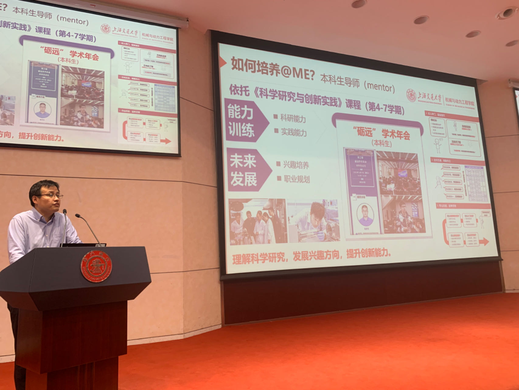 易培云教授以“机械与动力交叉•顶天与立地交融”为题,分享了在公司学习、科研、教书育人的经历,启迪学子们艰苦奋斗、砥砺前行、勇于创新,并结合创业经历,介绍了公司智能制造、能源、机器人等前沿研究方向,激励大家成长为复合型人才。