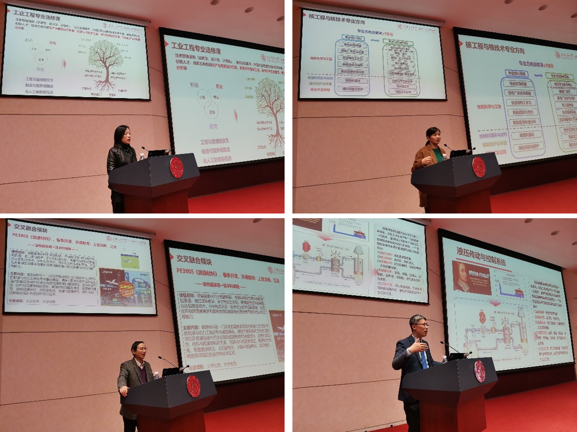 工业工程专业教学负责人陈璐、核工程专业教学负责人熊珍琴分别介绍了相关专业选修课课程体系及课程主要内容。上官文峰、陶建峰分别介绍了2024年春季学期主讲课程《液压传动与控制》、《能源材料》,包括课程设置的目标、主要教学内容及在行业中的典型应用案例等。年级组长戴雨吟介绍了新任2021级本科生思政教师团队、2024届公司本科生的毕业去向情况,还就考风考纪、征兵工作等作了说明。