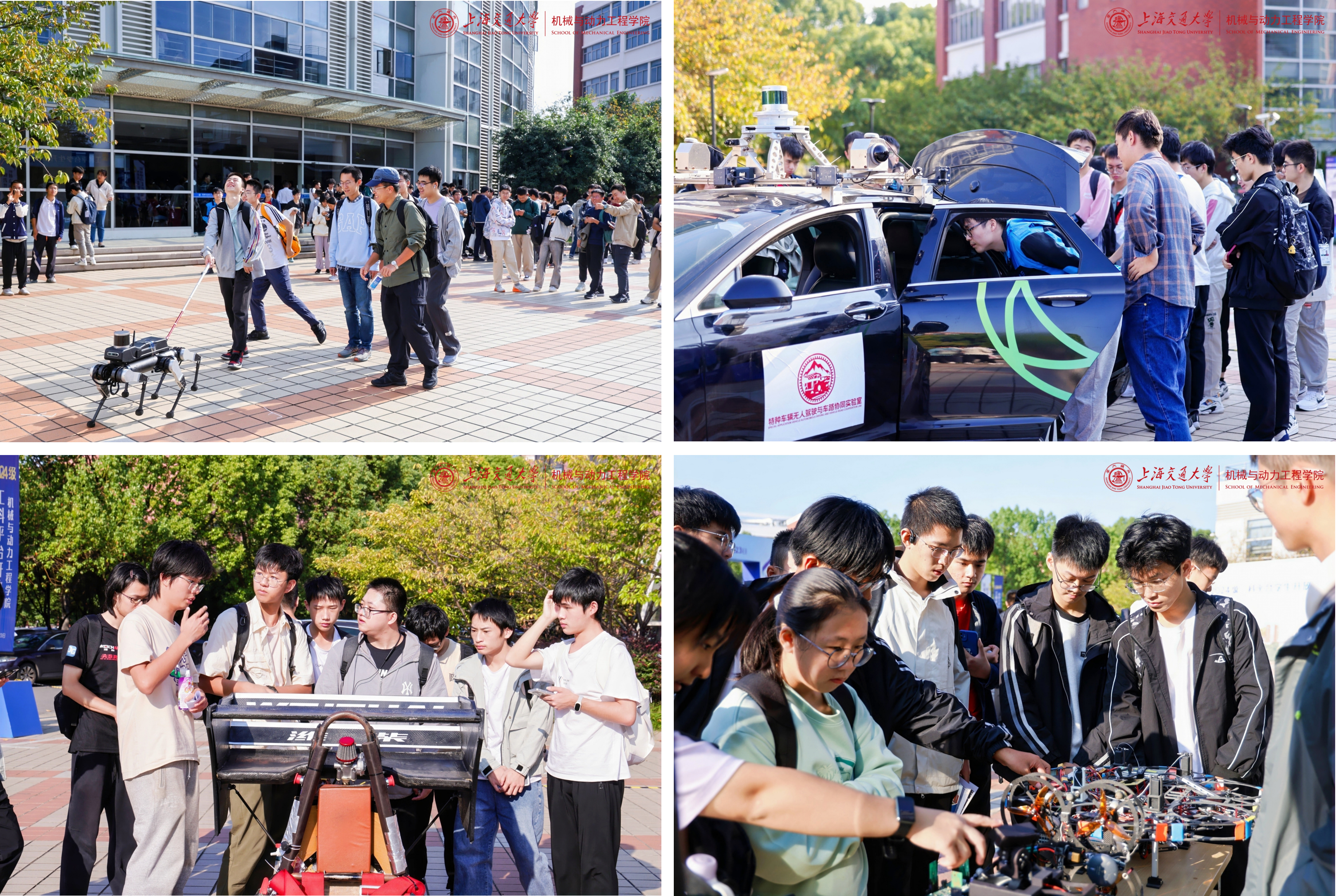 新生们还参观了机器人研究所,振动、冲击、噪音研究所,前瞻交叉研究中心,新能源动力研究所等实验室,深入了解了公司的教育资源和科研环境。活动体验区展示了公司在机械设计、动力系统、自动化技术、智能制造等多个领域的创新项目,包括突破人机交互技术、助推盲人“无碍”行走的“导盲六足机器人”,可携带四足机器人并协作完成环境探索的无人机Dragon Rider,国内首个面向露天水泥矿山的无人驾驶运输系统,以及员工自主设计和制造的、能在赛道上高速驰骋的高性能赛车C39。大家近距离观摩了科研成果,亲身感受了科研的魅力。