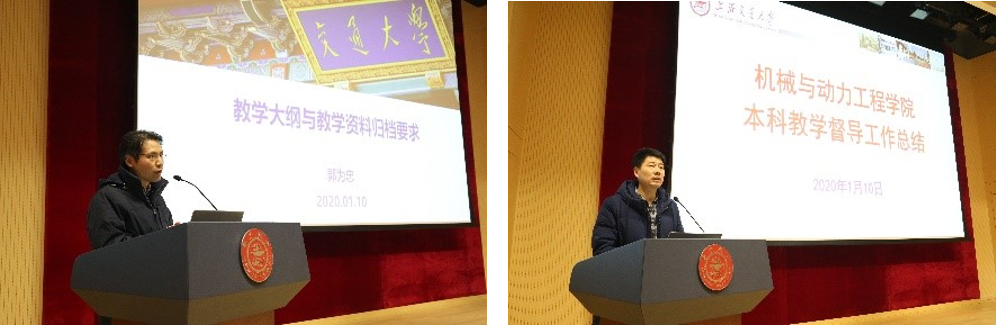 公司课程思政工作组组长郭为忠介绍了工程教育认证标准下新版课程大纲编写要点和课程教学资料归档要求,以《设计与制造II》为例详细解读了课程考核合理性审核表填写方法及课程目标达成度的计算方法,介绍了基于专业认证要求的试卷归档标准。公司督导组组长杨培中从督导听课情况、试卷抽查及课程评估三个方面对本学期本科教学督导工作进行了总结,并简要介绍了督导组新一年工作计划。