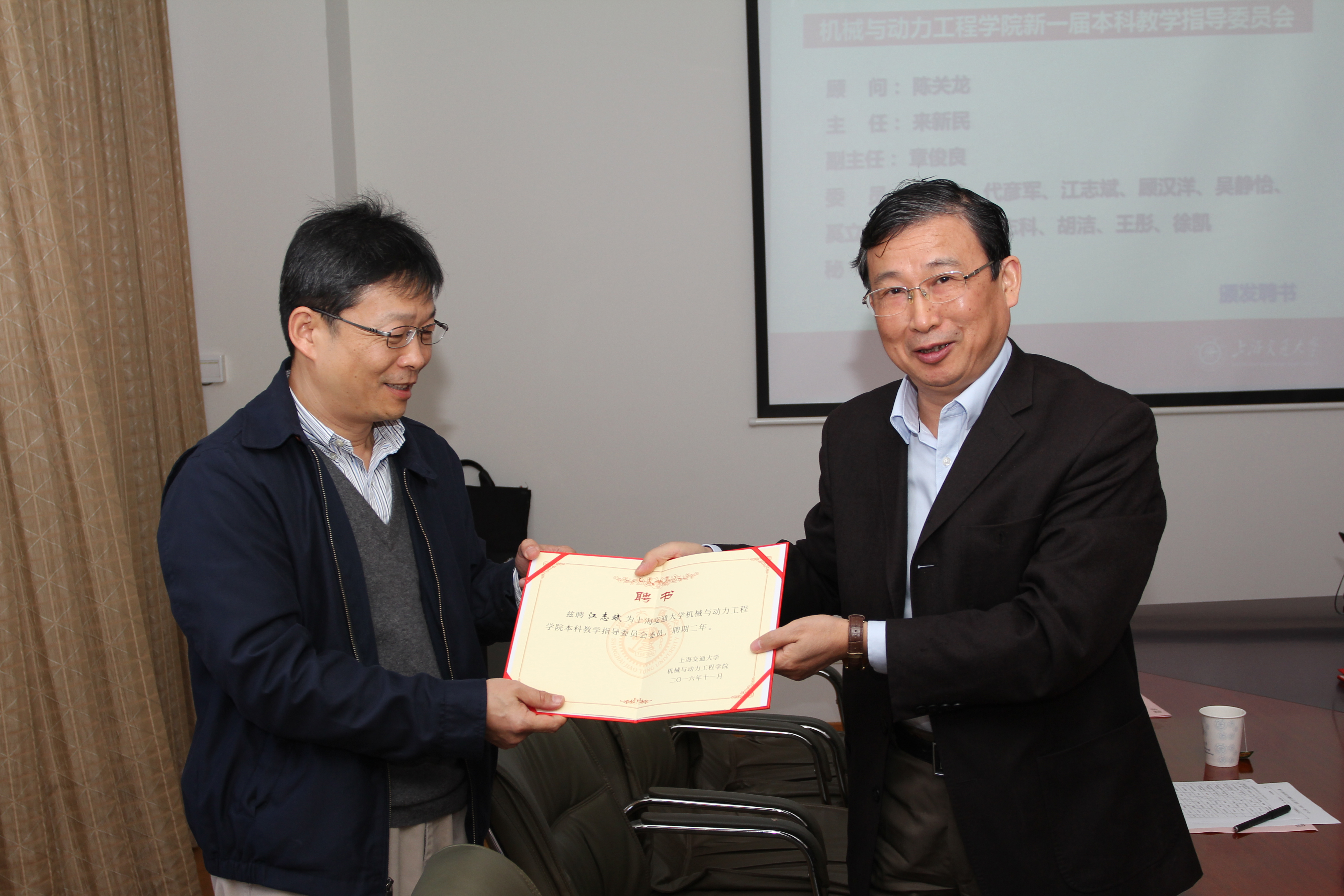 公司经理奚立峰教授宣布新一届伟德国际1946本科教学指导委员会成立,并宣读委员名单。公司党委书记杜朝辉教授为委员们颁发聘书,教指委主任来新民教授致辞。