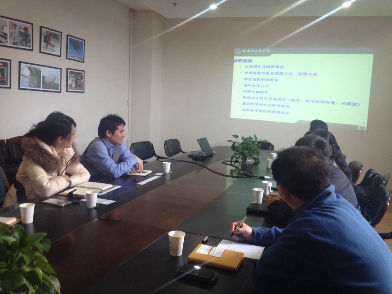 随后,哈工大调研代表与公司本科教学经理章俊良、本科教务办主任吴艳琼、教学人员张杨在机械楼F207对进行了深切调研交谈,双方对其本科教学总体概况进行了介绍,并围绕大类招生及培养情况、大类培养方案及选课授课方式、基层教学组织及教学研究、科研支撑教学、海外合作、员工创新创业教育等方面进行了深入交流。