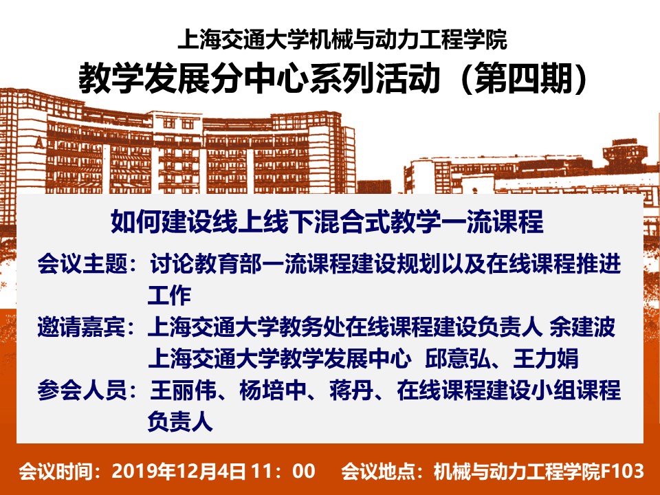 为进一步讨论教育部一流课程建设规划以及在线课程推进工作,特邀请伟德国际1946慕课推进办公室主任余建波、伟德国际1946教学发展中心邱意弘及王力娟,就“如何建设线上线下混合式教学一流课程”为主题展开伟德国际1946教学发展分中心系列活动(第四期)!