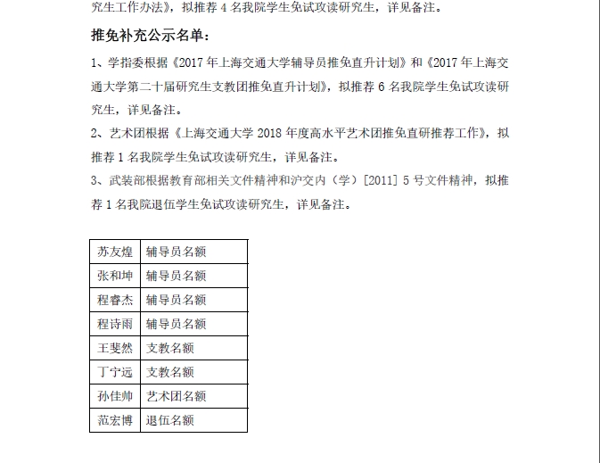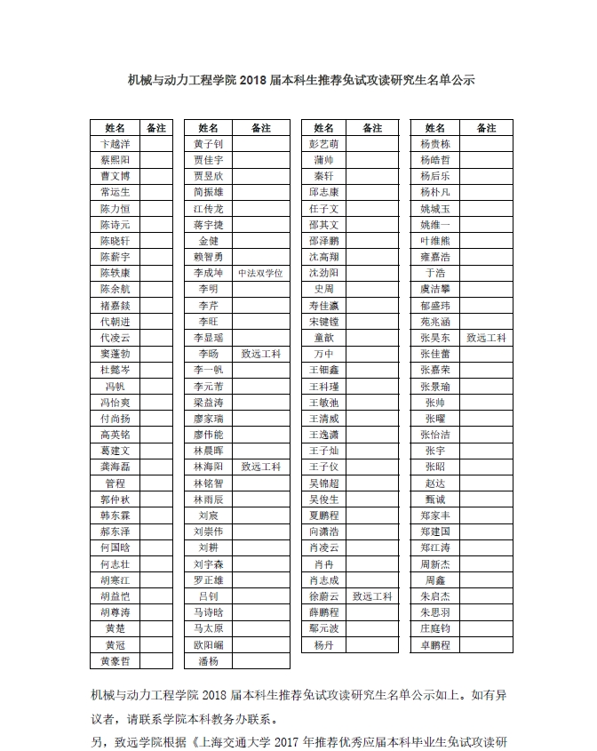 【推免】伟德国际19462018届本科生推荐免试攻读研究生名单公示