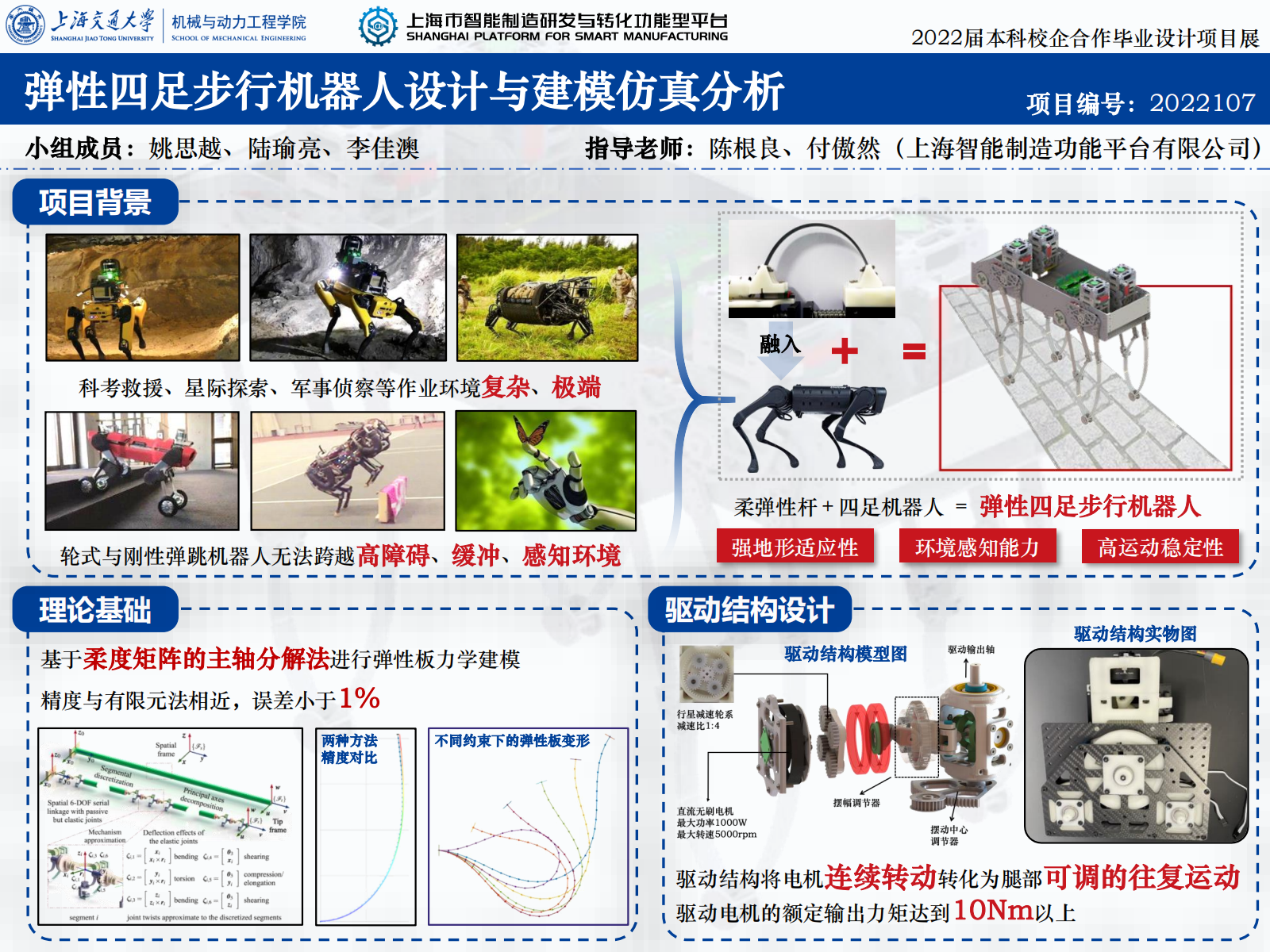 (1)完成一种基于弹性板的弹性四足步行机器人的构型设计,并完成实时且有较高精度的力学建模。