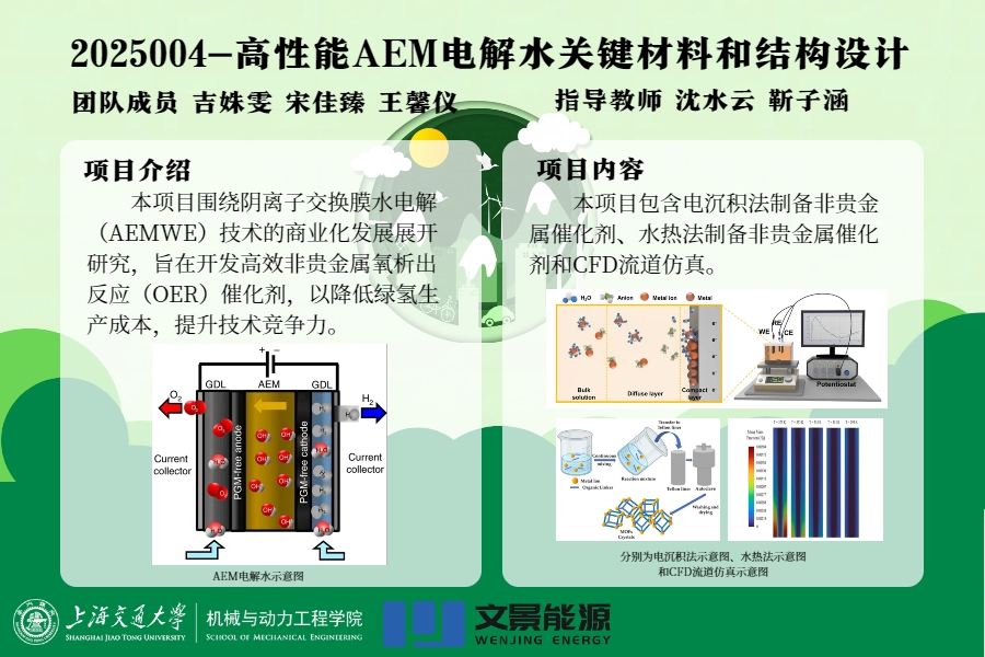 本项目以降低绿氢生产成本和提升技术竞争力为核心目标,围绕AEMWE技术开展高性能非贵金属催化剂的开发与优化。通过电沉积法与水热法制备多金属掺杂催化剂,提升其活性与稳定性,降低材料与运行成本。同时,构建高精度仿真模拟模型,优化电解槽结构与操作参数,减少实验试错,提升效率。结合文献调研与现有模型分析,识别AEMWE系统中的关键问题,明确性能提升方向,力求在实现经济性、环保性与安全性的基础上,推动绿氢技术的大规模商业应用。