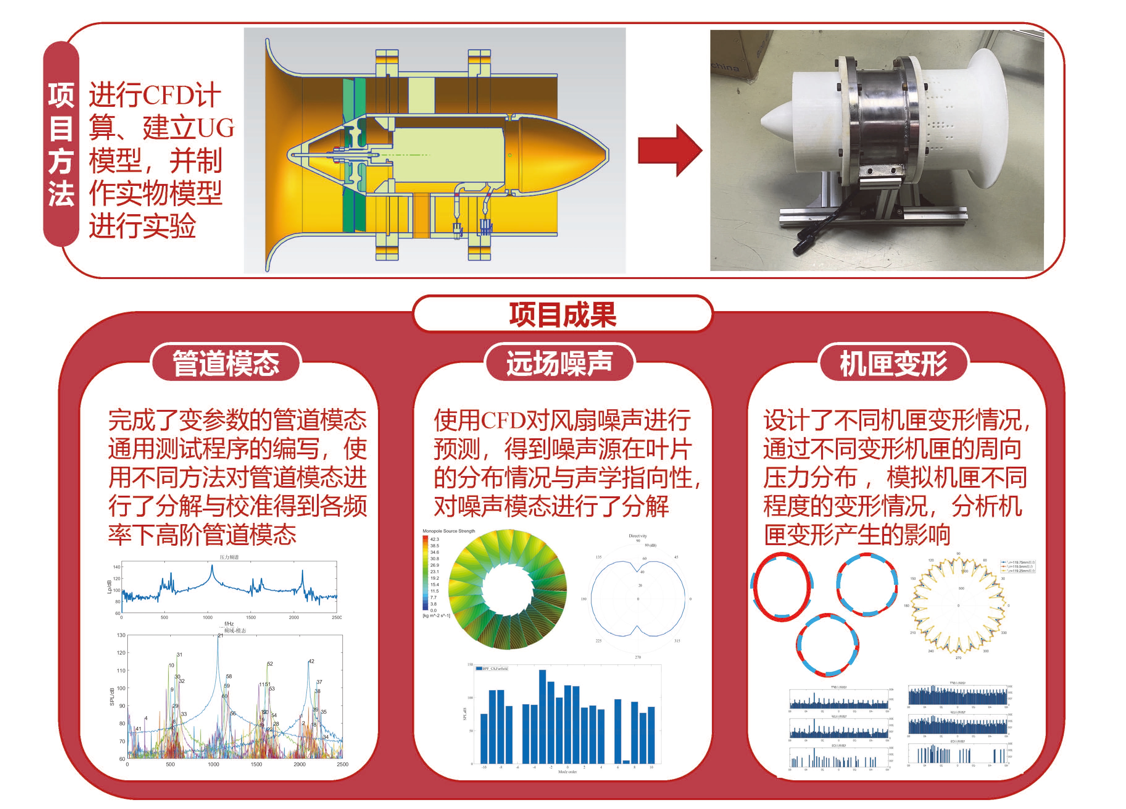 总体目标是实现飞行背包升力风扇的设计和优化。具体包括:建立升力风扇的CFD模型,对风扇的升力特性和内部流动特性进行仿真计算;建立变参数的管道模态分析和远场噪声分析程序;分析机匣变形后升力风扇的模态特性。