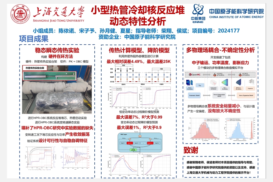 随着科技的发展和能源需求的增长,小型核反应堆逐渐受到了广大研究者的关注。特别是小型热管冷却核反应堆设计紧凑,可以应用于偏远地区供能,或者特定的工业应用中。然而,小型热管冷却核反应堆在动态工况下的特性尚未完全明确,这需要深入的研究和分析。本项目进行了具体的传热实验、数值模型的搭建以及热管堆敏感性不确定性分析。本项目旨在通过深入研究小型热管冷却核反应堆的动态特性,为其在实际工程中的应用提供理论支撑和优化建议。