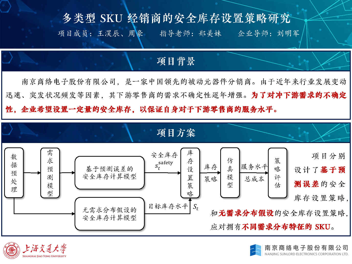 本项目的主要内容是从需求预测误差和无需求分布假设的规划模型两个角度,采用不同的方法确定企业的安全库存设置策略。