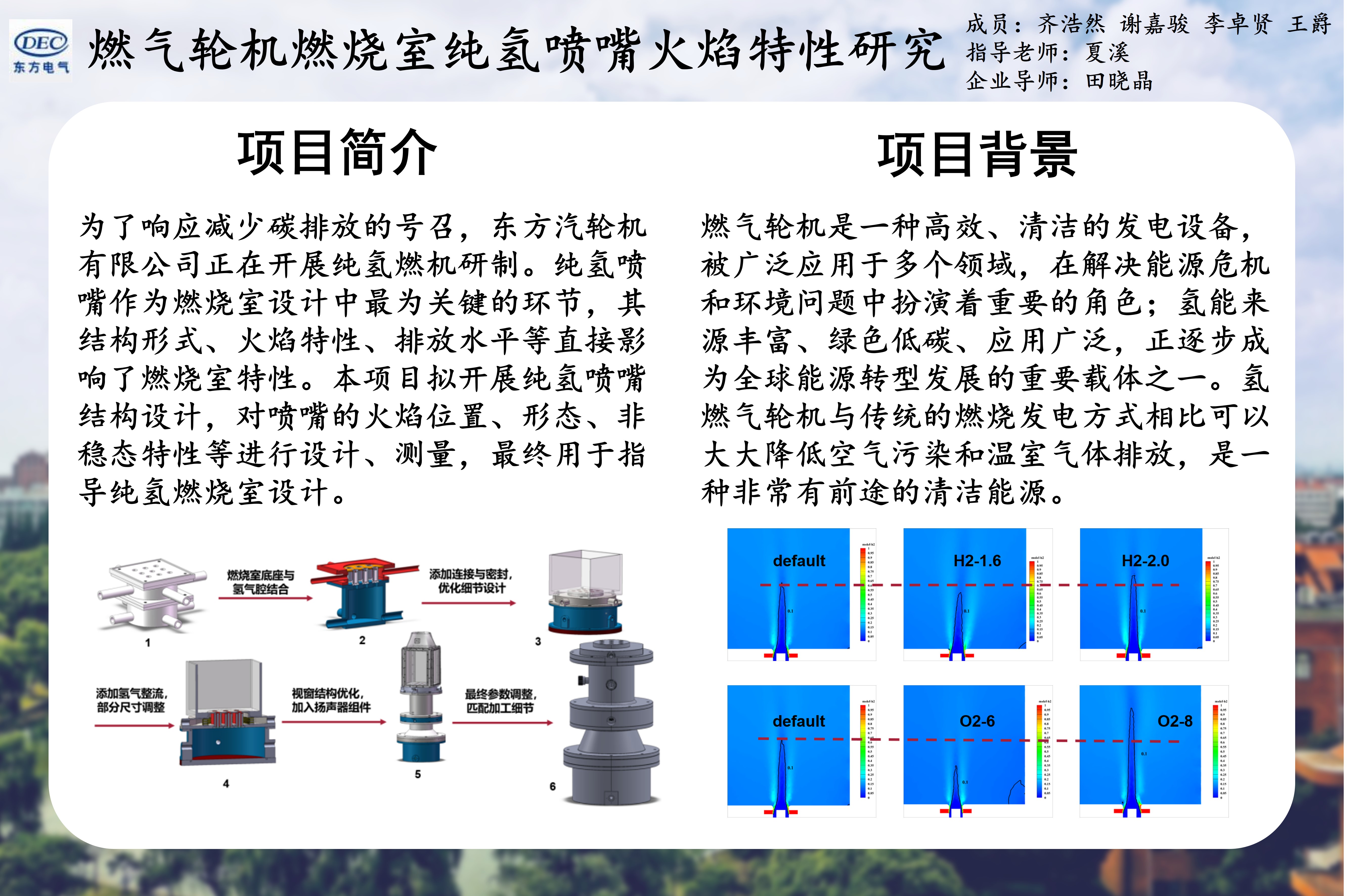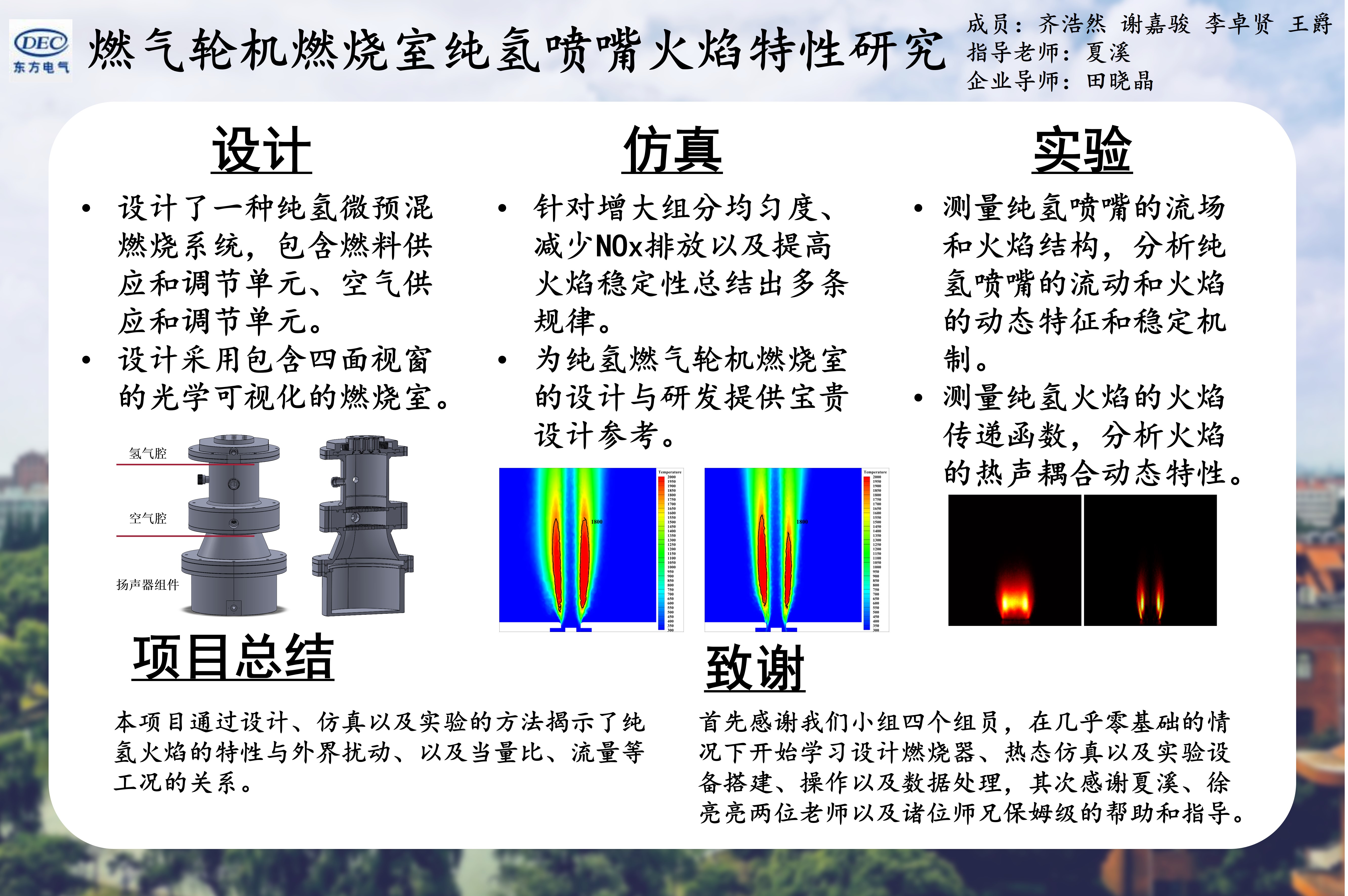与课题团队一起,完成纯氢燃烧系统的设计、出图、安装和调试,燃烧器可以顺利点火,并形成稳定性的氢气/空气火焰。