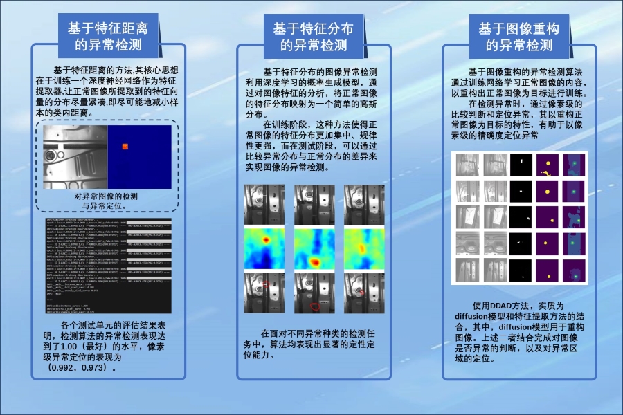 本系统成功实现了对PVC产品质量的高效、精确检测,有效提高了生产线的自动化水平和产品质量。小组成员分别通过基于图像特征距离、图像特征分布、图像重构这三方面的图像处理算法进行实验,在MVtec标准数据集上的实验验证了算法的准确性。制作了汽车底盘PVC数据集,并在此数据集上进行实验,实验结果能够准确识别PVC产品中的缺陷,大大提高了工业质检的效率。此外,该系统还具备泛化能力高、稳定性强的特点,有利于严控产品质量,降低检测成本,扩大检测范围。