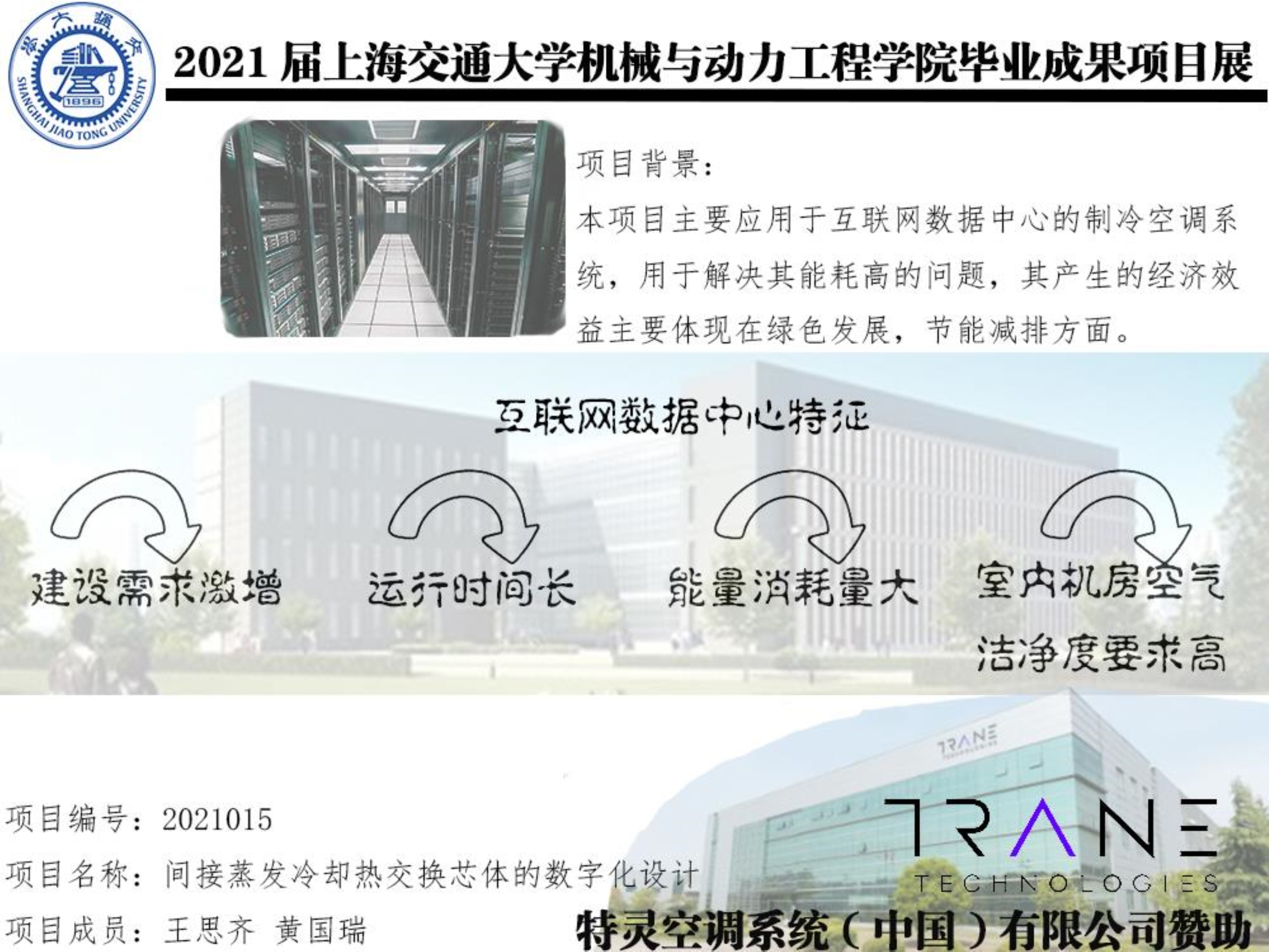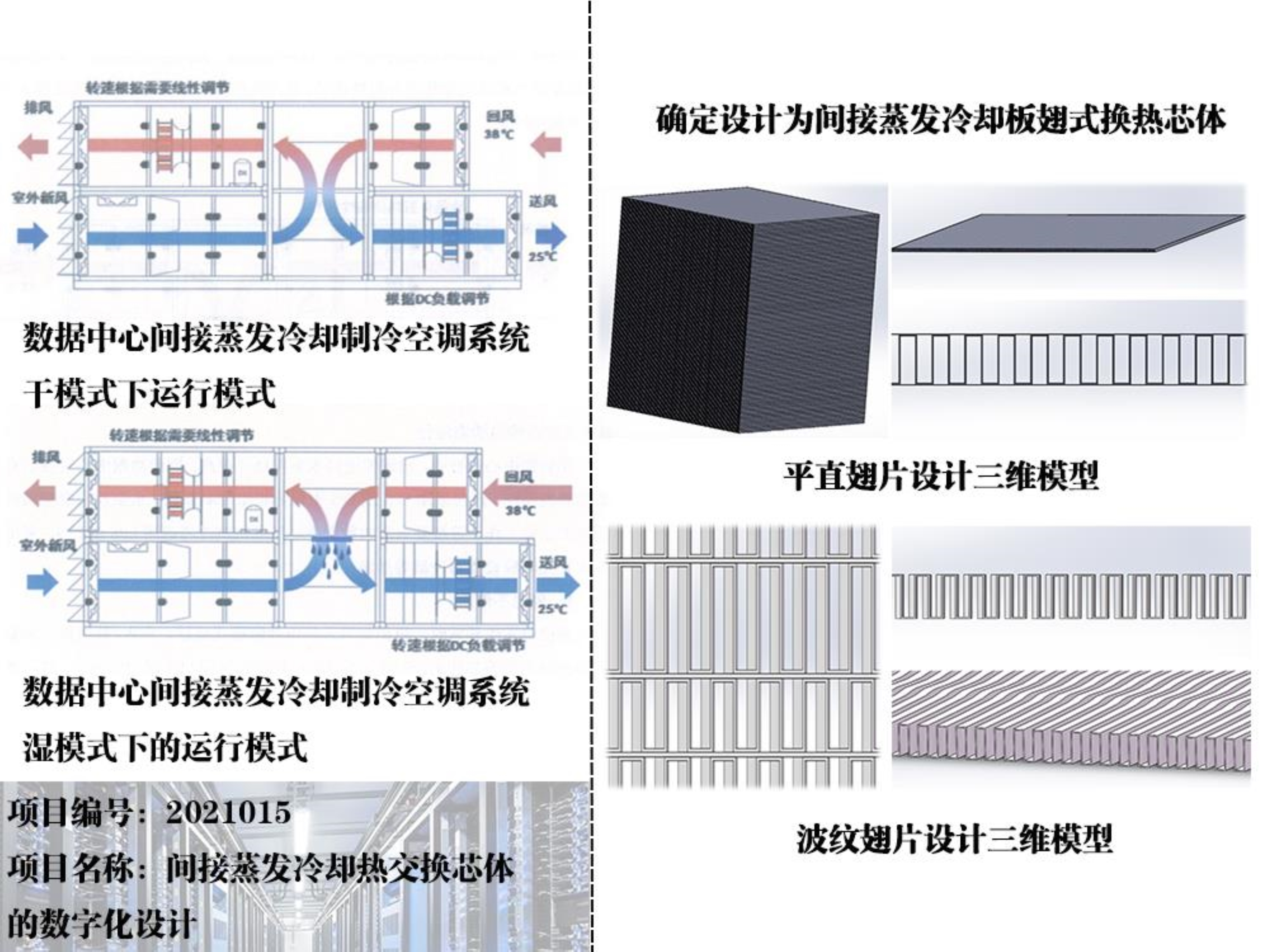 本项目为间接蒸发冷却热交换芯体的数字化设计,由伟德国际1946本科毕业设计小组与特灵空调系统(中国)有限公司联合展开。本项目旨在通过调研间接蒸发冷却技术的发展及研究现状,设计出一款利用自然冷能的间接蒸发冷却换热芯体,用于数据中心机房的制冷系统,达到降低数据中心制冷系统能耗的目的。设计的换热芯体需要达到特灵空调系统(中国)有限公司提出的换热效率要求、使用风量要求,并向企业提供结题报告。
