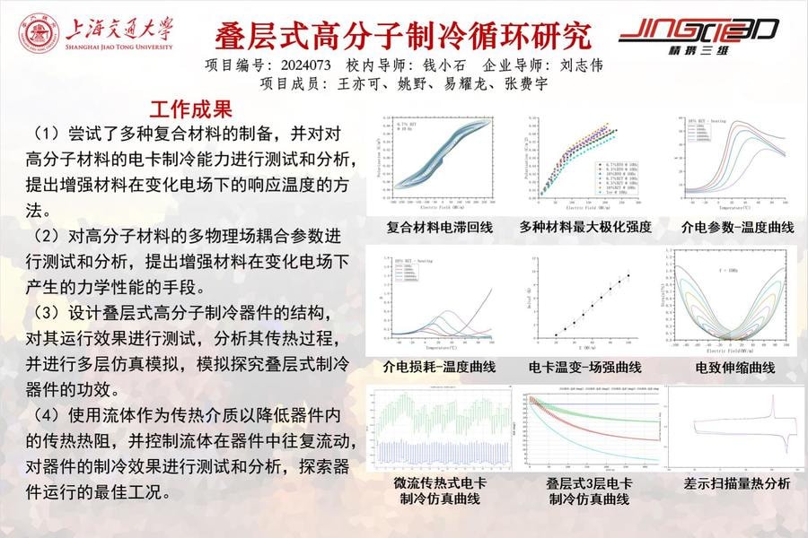 (1)尝试了多种复合材料的制备,并对对高分子材料的电卡制冷能力进行测试和分析,提出增强材料在变化电场下的响应温度的方法。
