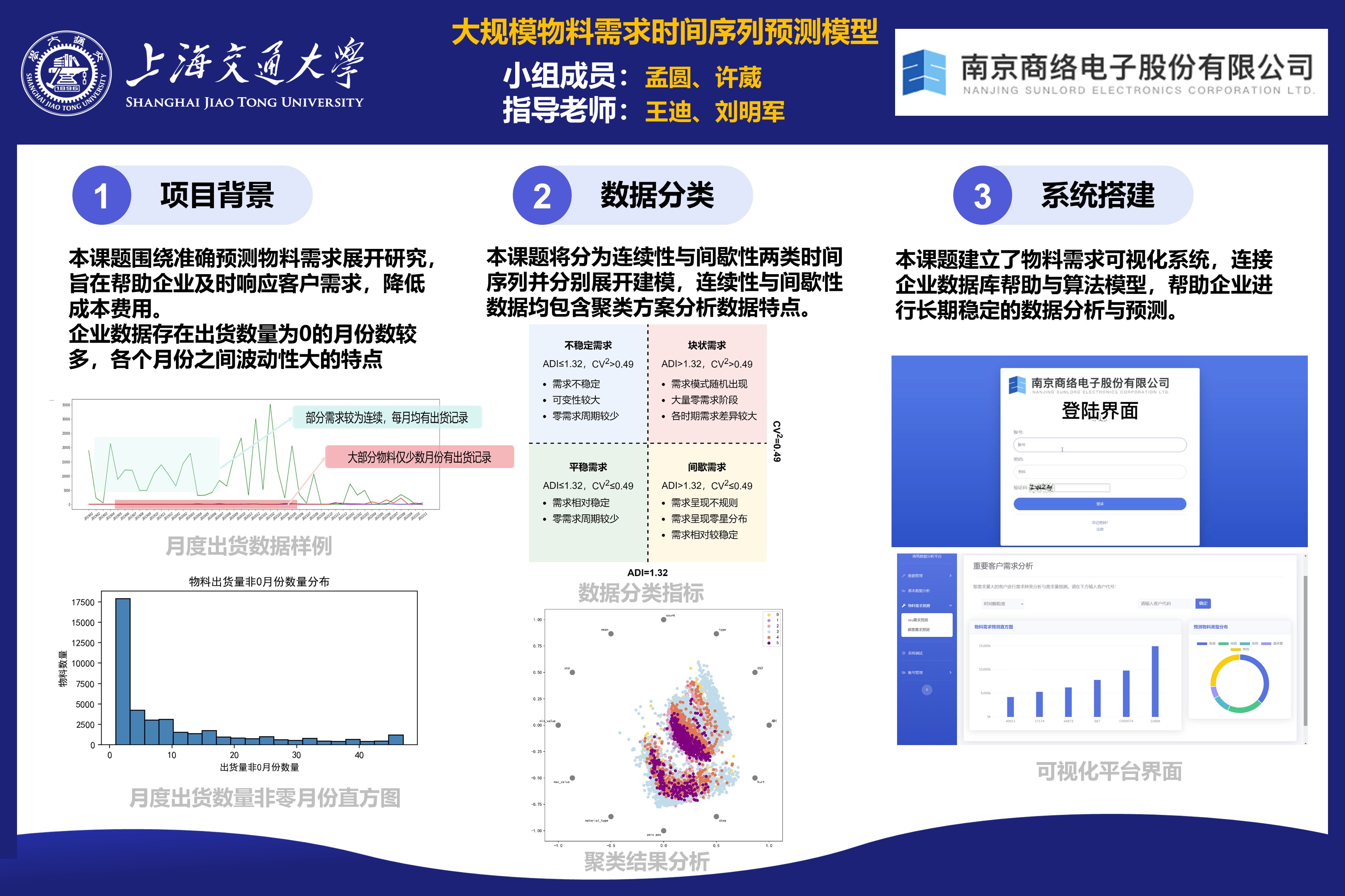 3. 基于连续性和间歇性时间序列的物料需求预测研究,采用Bootstrap作为前端框架、Django作为后端框架,基于MySQL完成了数据库的搭建,开发了物料需求预测可视化系统。