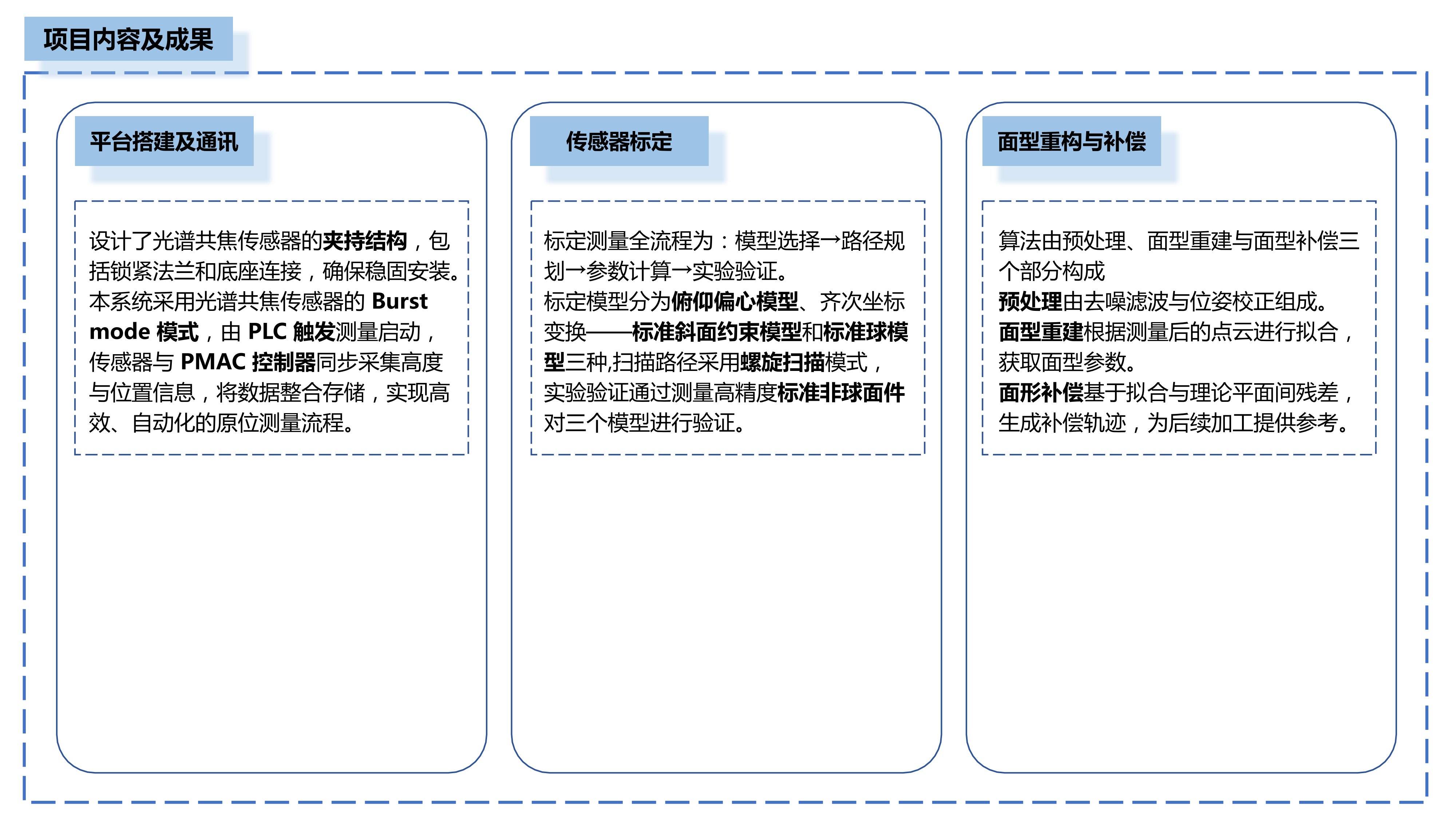 2. 开发基于光谱共焦传感器的在机测量数据处理与补偿算法,通过优化数据预处理、面型重建和误差补偿方法,提升精密制造中的测量精度与加工效率。