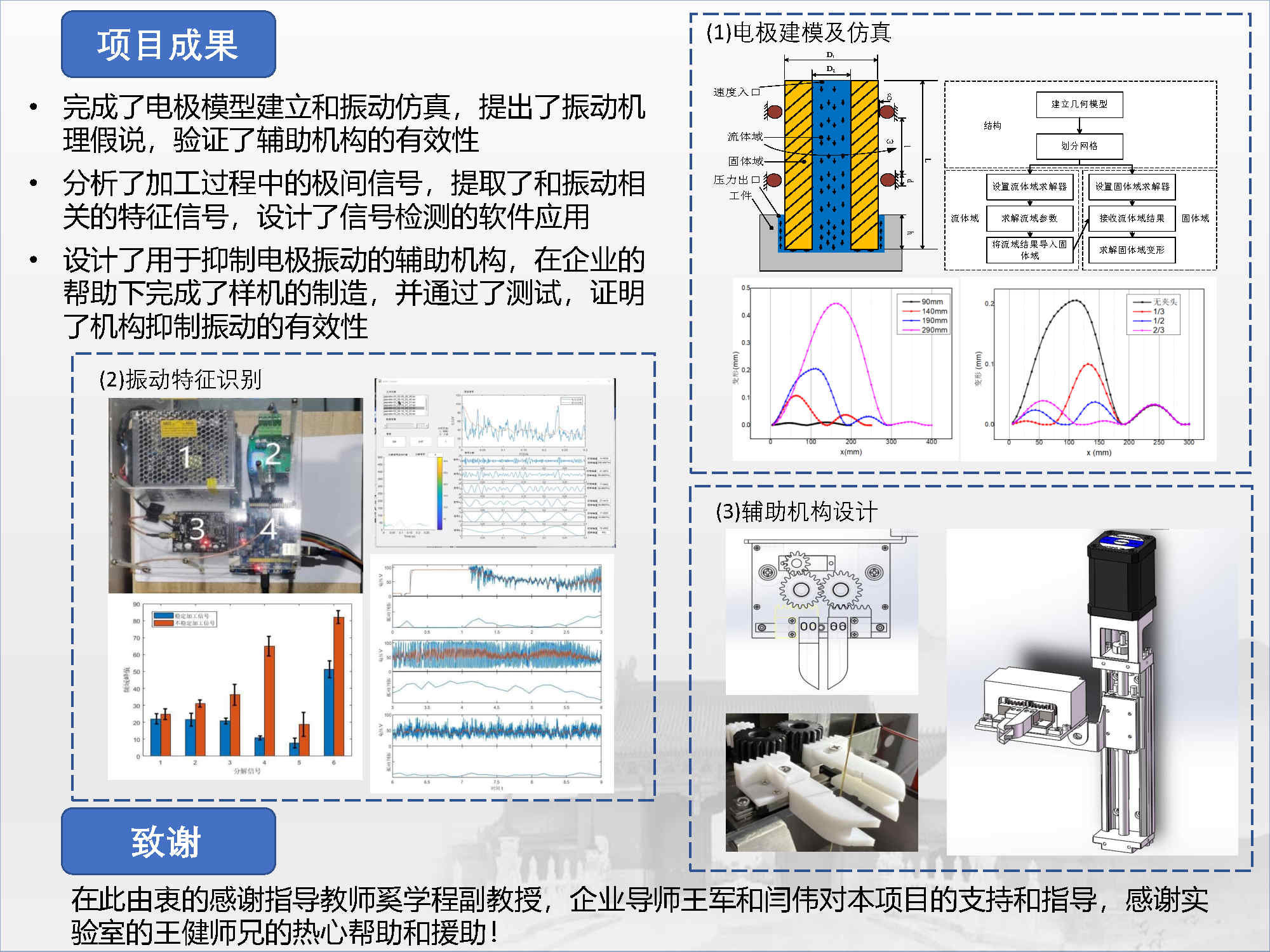 完成了电极模型建立和振动仿真,提出了振动失稳机理假说,为机构设计提供理论依据及设计思路,验证了辅助机构的有效性;
