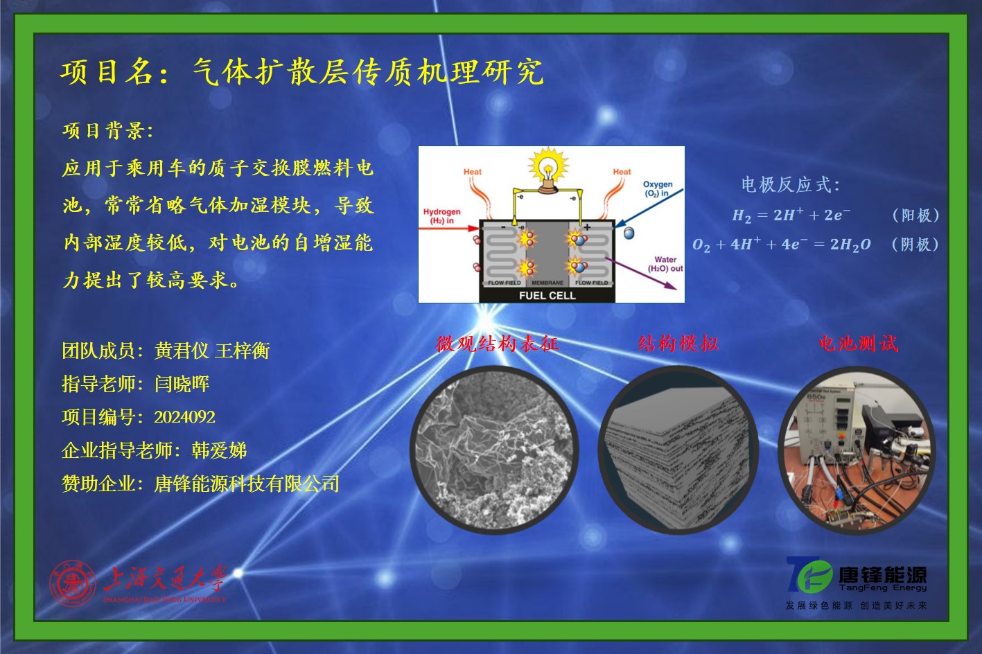 应用于乘用车领域的质子交换膜燃料电池,具有高效,环保等特点,但出于结构设计的要求,往往省略气体加湿模块,导致燃料电池内部工作湿度较低,从而对电池的自增湿能力提出了较高的要求。本项目希望通过电池敏感性测试与模拟仿真手段,研究乘用车工况下气体扩散层的水气传输规律,进而通过选材,结构设计,工艺优化等手段对气体扩散层微孔层进行设计开发,优化乘用车怠速点与额定点的水管理问题。