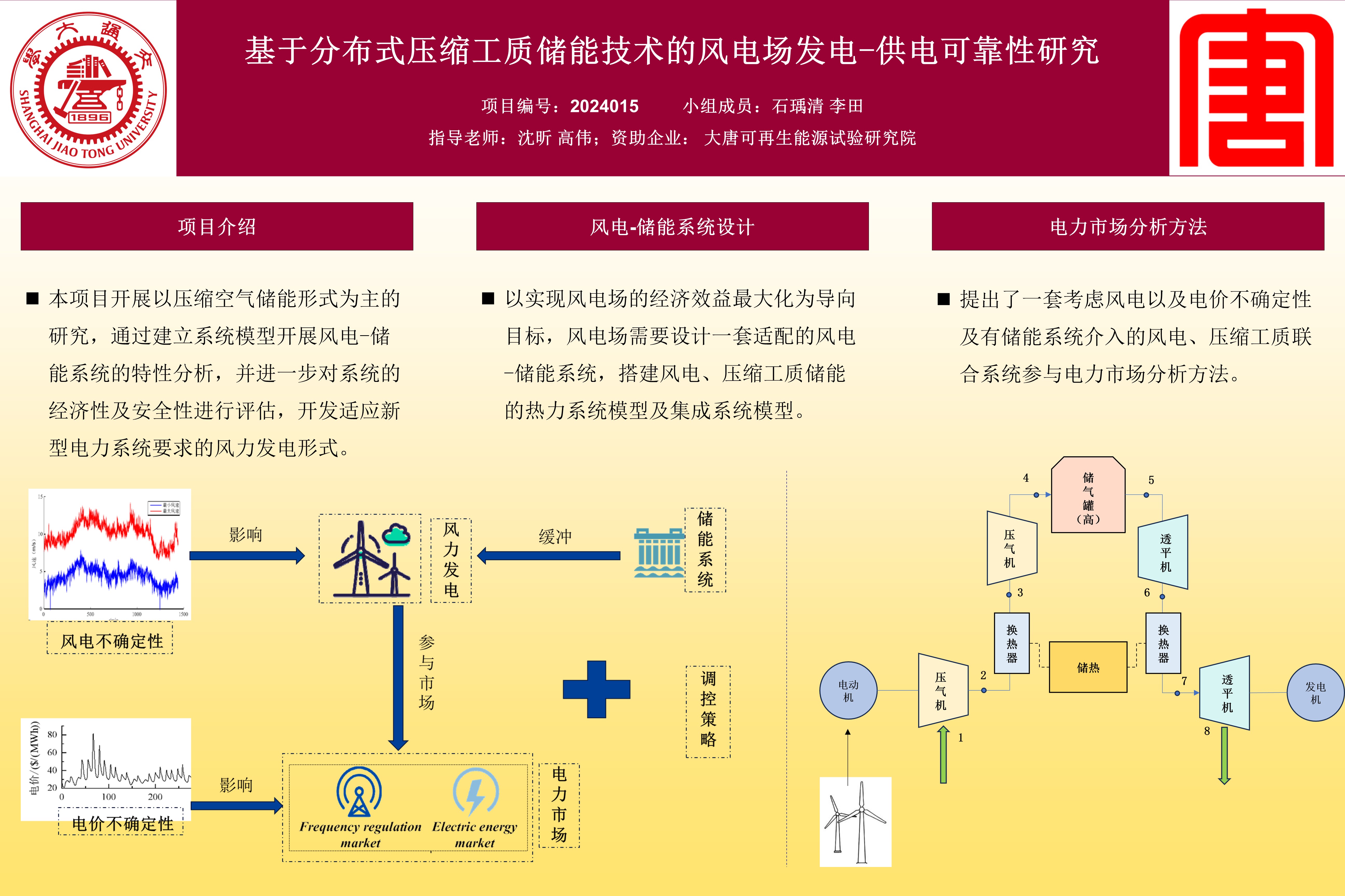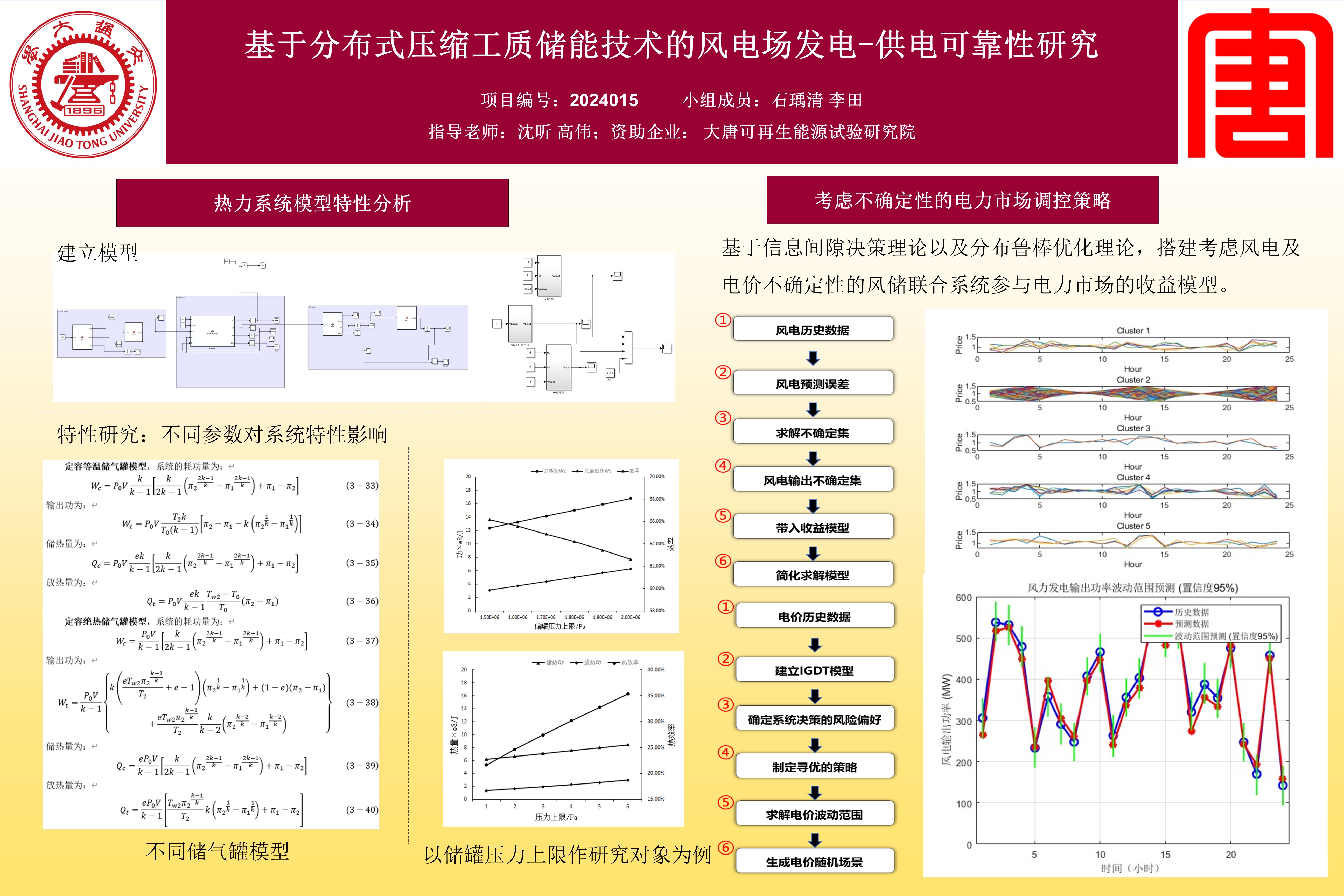 在储能部分,使用层次分析法比较了多种储能技术,对风电场提出风电-储能系统并搭建了不同热力系统模型,后对集成系统进行仿真验证模型正确性和特性分析;在调控部分,基于信息间隙理论决策以及分布鲁棒优化理论,搭建了考虑风电及电价不确定性的风电、储能联合系统参与电力市场的收益模型,确定了电力市场调控策略。