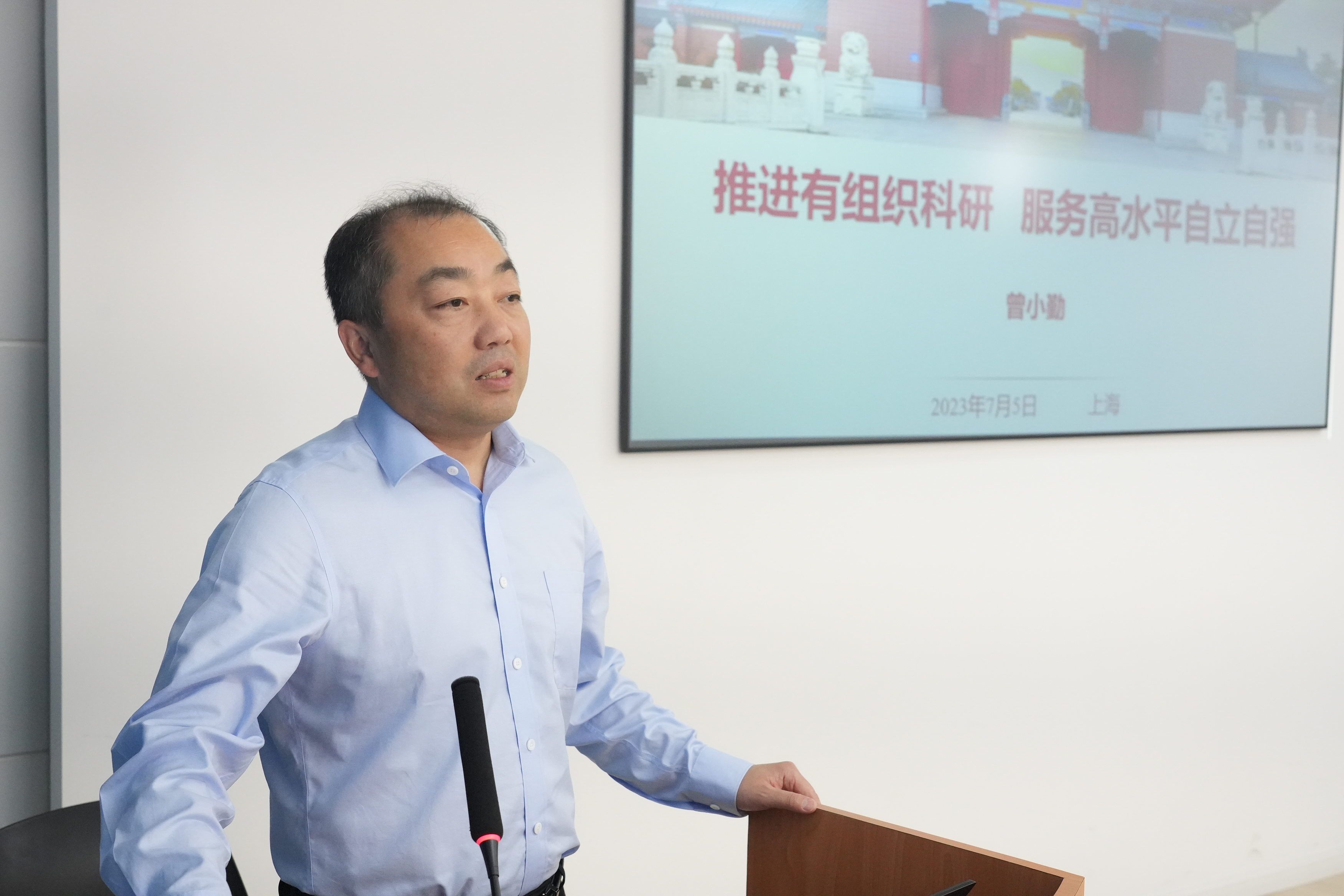 上海交大科学技术发展研究院经理曾小勤以“推进有组织科研 服务高水平自立自强”为主题,就“开展有组织科研背景”、“公司科研基本情况”、“有组织科研探索实践”、“面向未来的思考”四个方面做专题讲座。他围绕习近平总书记关于科技创新的重要讲话、教育部关于高校有组织科研的战略部署进行了阐述,并结合公司基础研究创新“集中区”“自由区”“融合区”三区模式,以及四大专项行动计划等,介绍了公司在开展有组织科研方面的重点举措与战略布局,提出了关于有组织基础研究的深入思考。他还与大家就如何打破学科藩篱,跨学科组建科研团队服务国家重大专项进行了交流,结合自己科研团队的建设,建议青年教师有意识地“走出去”,加强与企业、同行的交流,及时了解行业动态,关注国家各类科研项目相关政策和指南,不断寻求科研上的创新和突破。