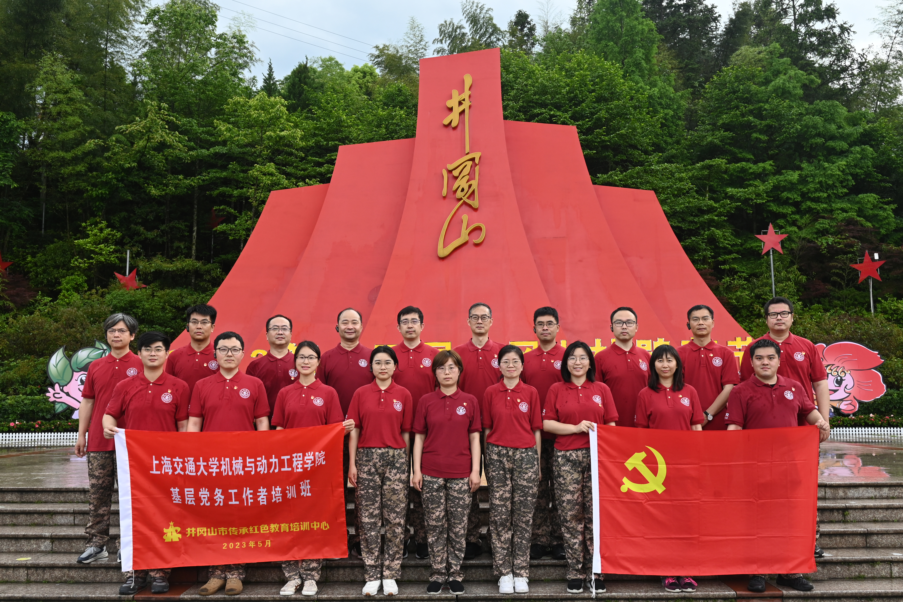 追寻革命足迹,大家瞻仰了井冈山烈士陵园、小井红军烈士墓,重走了红军挑粮小道,参观了茨坪毛泽东旧居、黄洋界保卫战旧址、大井毛泽东旧居、小井红军医院等红色教育基地,并通过现场教学、向革命先烈敬献花圈、重温入党誓词等活动,深切缅怀革命先辈的丰功伟绩,深入感悟中国共产党人的初心和使命,深刻学习“坚定信念、艰苦奋斗、实事求是、敢闯新路、依靠群众、勇于胜利”的井冈山精神。此外,大家还通过唱响红歌、与井冈山红军烈士后代座谈等活动,感悟先辈们“舍小家为大家”的奉献精神,汲取信仰的力量。