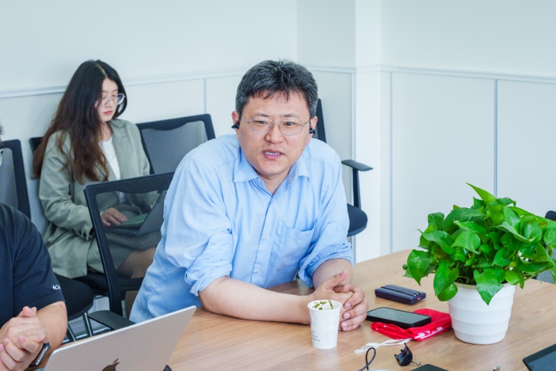 王强介绍了上辅的发展概况。王强指出,作为国内最大的专业电站辅机和压力容器制造商,公司在高温高压管式热交换器领域具有显著优势。王强表示,公司已与饶宇教授团队开展项目合作,期待通过党建平台拓展合作广度与深度。
