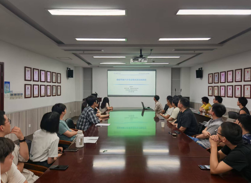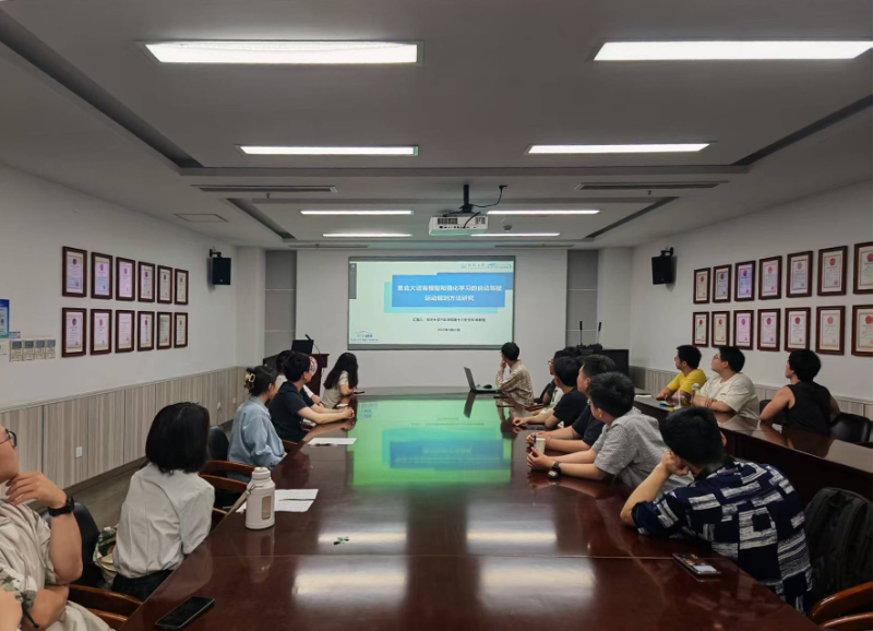 在科研学术交流分享环节,沈佳杰首先进行了《自动驾驶汽车安全现状及发展趋势》汇报,首先回顾了汽车交通系统技术重大变革的历程,其次系统介绍了不同等级自动驾驶汽车所具备的功能及其局限性,并深入剖析了当前自动驾驶汽车仍存在的安全隐患和宣传问题。随后水崇源进行了《集群应用场景下燃气轮机动态特性与调控方法研究》汇报,介绍了燃气轮机集群的应用场景和复杂的动态特性,同时说明了在解决燃气轮机集群应用中建模、分析、控制三个方面的关键科学问题和拓展多智能体学科的方法论方面的工作。陈智雯进行了《集合大语言模型和强化学习的自动驾驶运动规划方法研究》汇报,分析现有结合大语言模型和强化学习的运动规划方法的缺陷,介绍了大语言模型提示的强化学习运动规划范式,并基于该范式,深入解析了大语言模型的不同提示作对驾驶性能的影响。