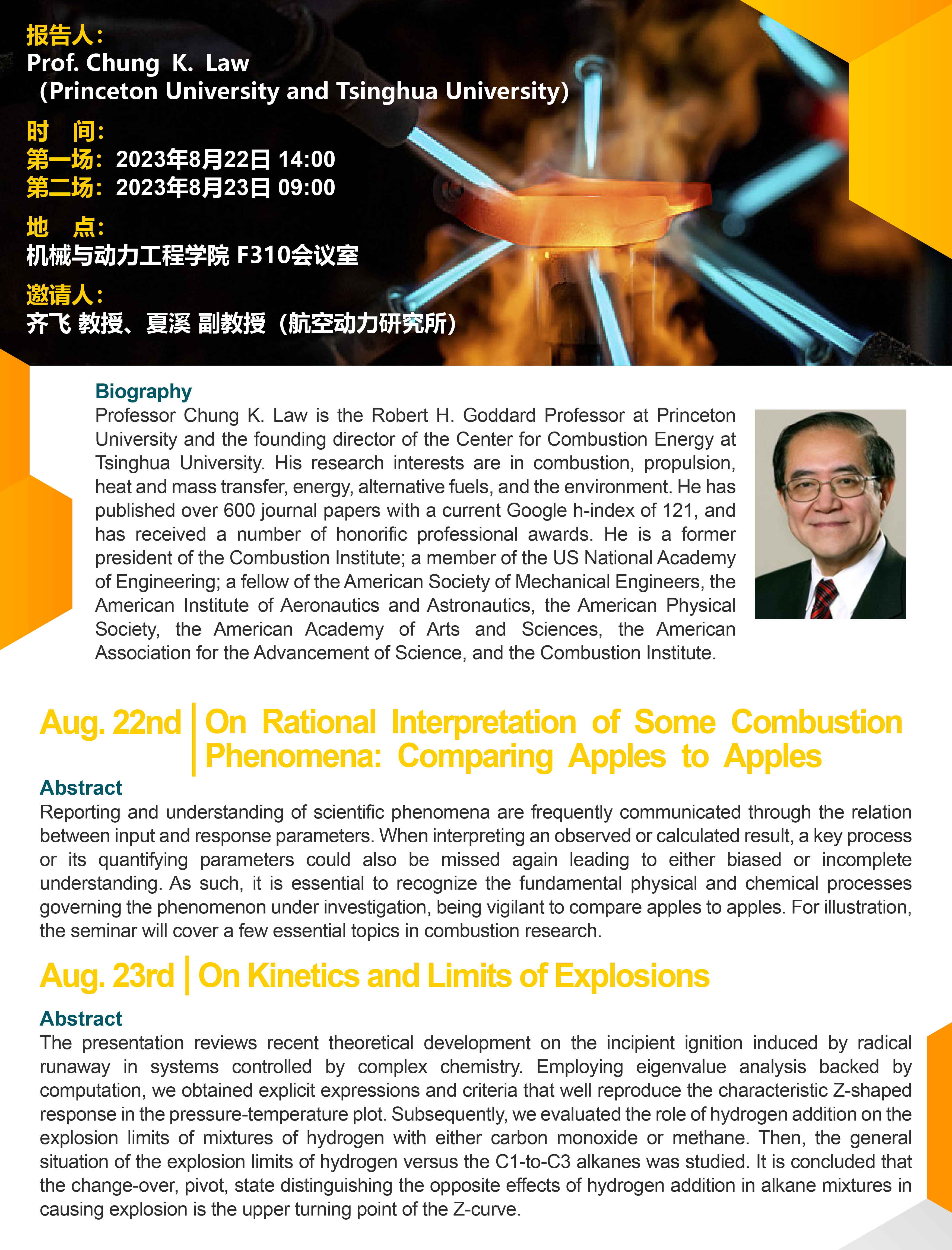 Speaker: Prof. Chung K. Law(Princeton University and Tsinghua University)