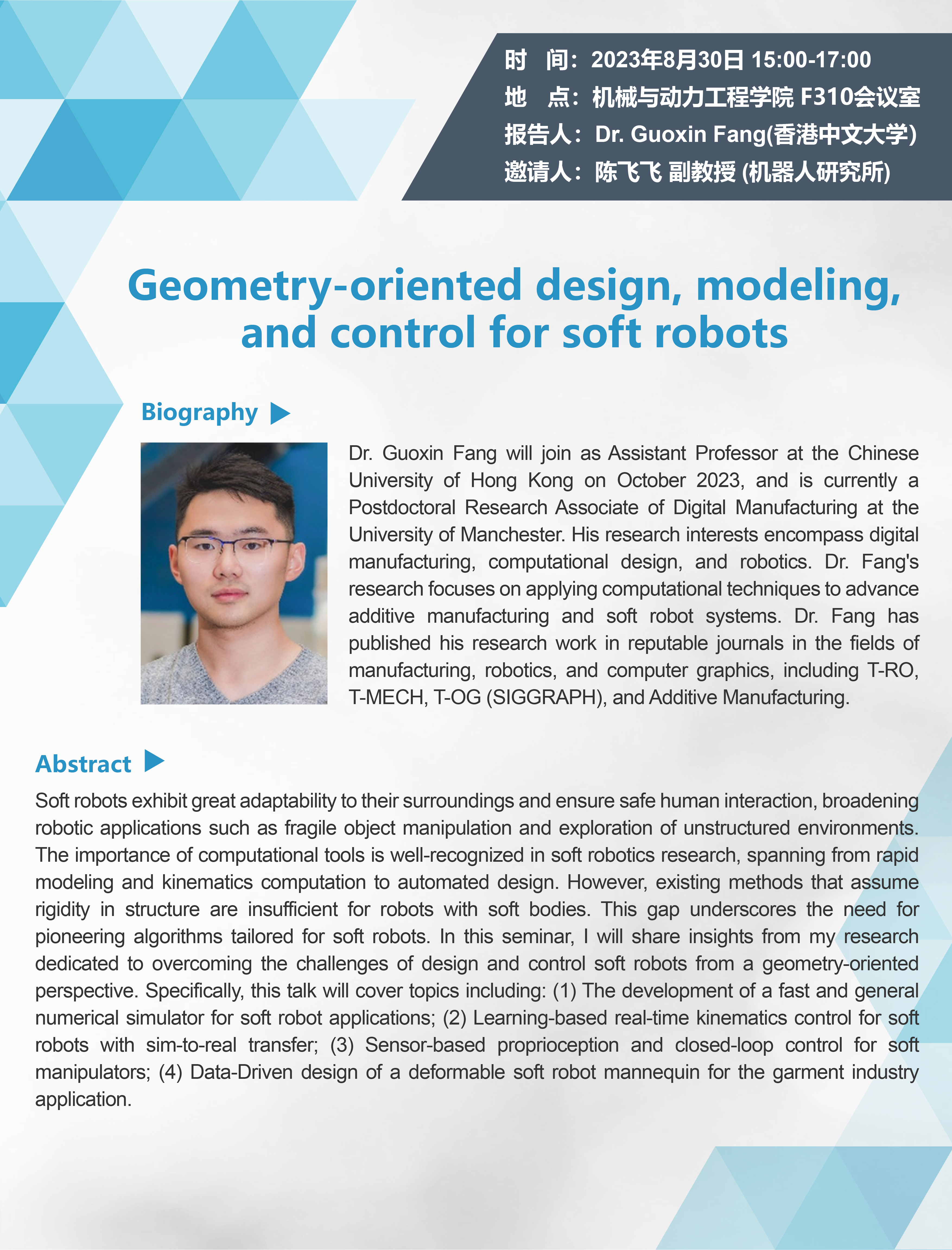 Host: CHEN Feifei, Assoc.Professor (Institute of Robotics)