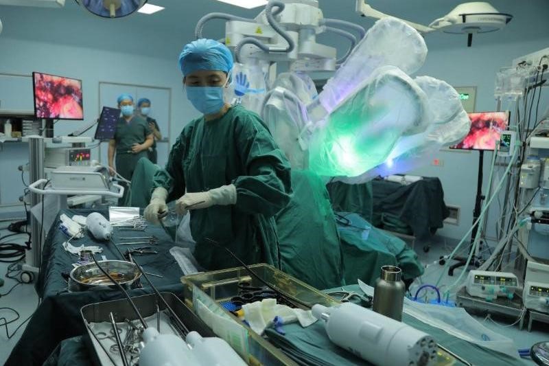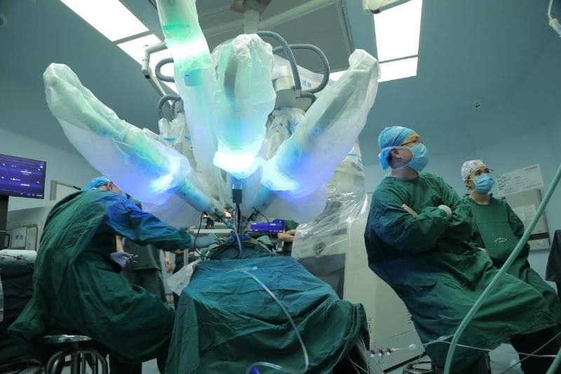 This surgery was performed by Dr. Linhui Wang, the head of the urology department at Changhai Hospital. The tumor was removed by the robot. The extracapsular resection, anatomical reconstruction, and wound closure were all completed with little blood loss, short operation time, complete lesion removal, and the surgery was a huge success overall.