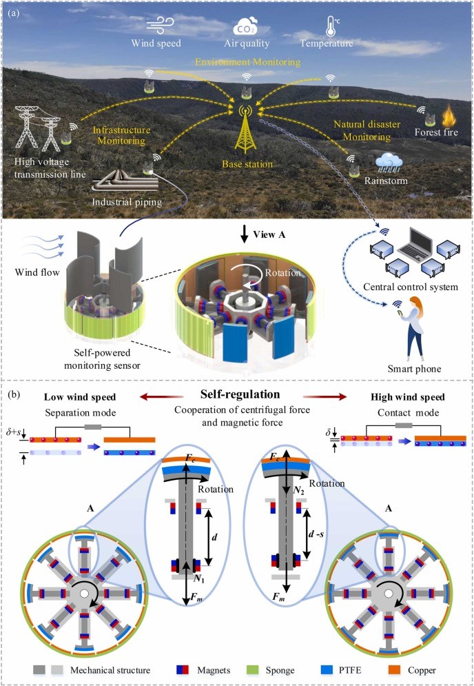 Recently, the Institute of Vibration, Shock and Noise (IVSN) in School of Mechanical Engineering, Shanghai Jiao Tong University published a research paper entitled “A self-regulation strategy for triboelectric nanogenerator and self-powered wind-speed sensor” in the journal Nano Energy. A self-regulation strategy is proposed to make the TENG wind harvester adjust its working mode adaptively according to the change of wind speed, improve equipment performance and service life significantly, and realize self-powered natural wind speed measurement. Dr. Hongxiang Zou and Dr. Linchuan Zhao are the joint first authors, and Professor Wenming Zhang is the corresponding author.
