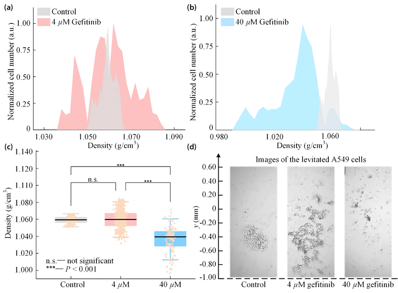 Levitation patterns for A549 cells treated with different concentrations of gefitinib