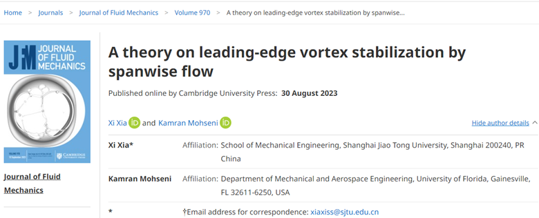 This work has been recently published in Journal of Fluid Mechanics (Rapids) and has already attracted numerous attention. As commented by one reviewer, “this work will not only provide supporting evidence for the important aerodynamic mechanism behind flapping-wing flight but will also open up possibilities to apply this novel approach to several other questions dealing with the stability of flow structures.”